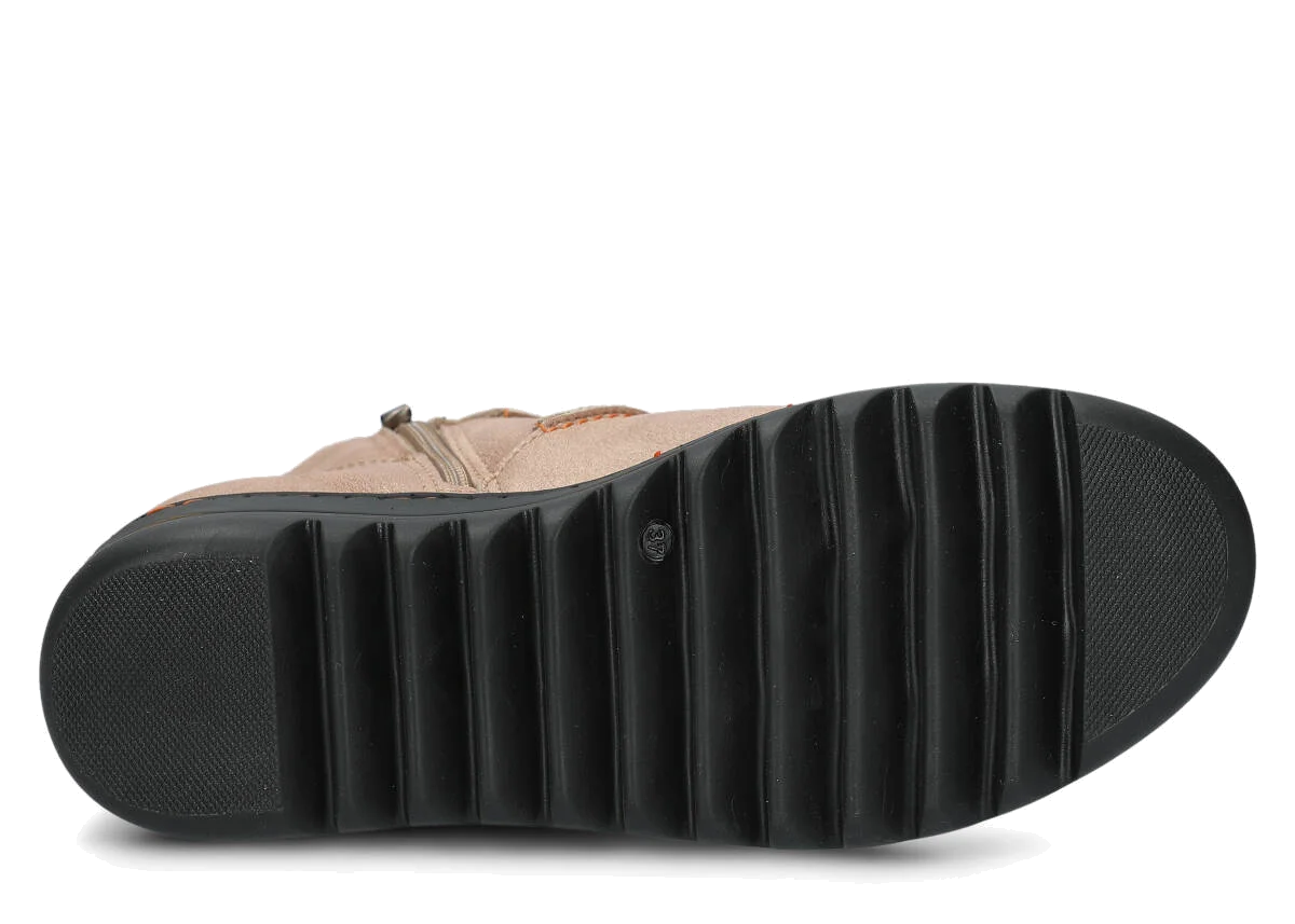 Rustic - šlechtěná kůže s hladkým povrchem. Charakteristický vzor hrášku, který se může při zpracování ztrácet. Pružná, masitá a kompaktní kůže. Ideální pro výrobu casual obuvi, plátěnek, botek nebo kozaček. Barvy jsou jednotné po celé ploše kůže, mohou se mírně ztmavovat při tepelné úpravě. Obuv z této kůže je snadno udržovatelná. Při natírání se barvy mohou ztmavovat.