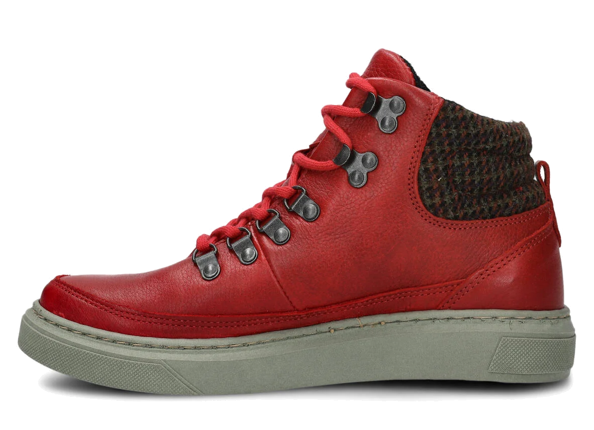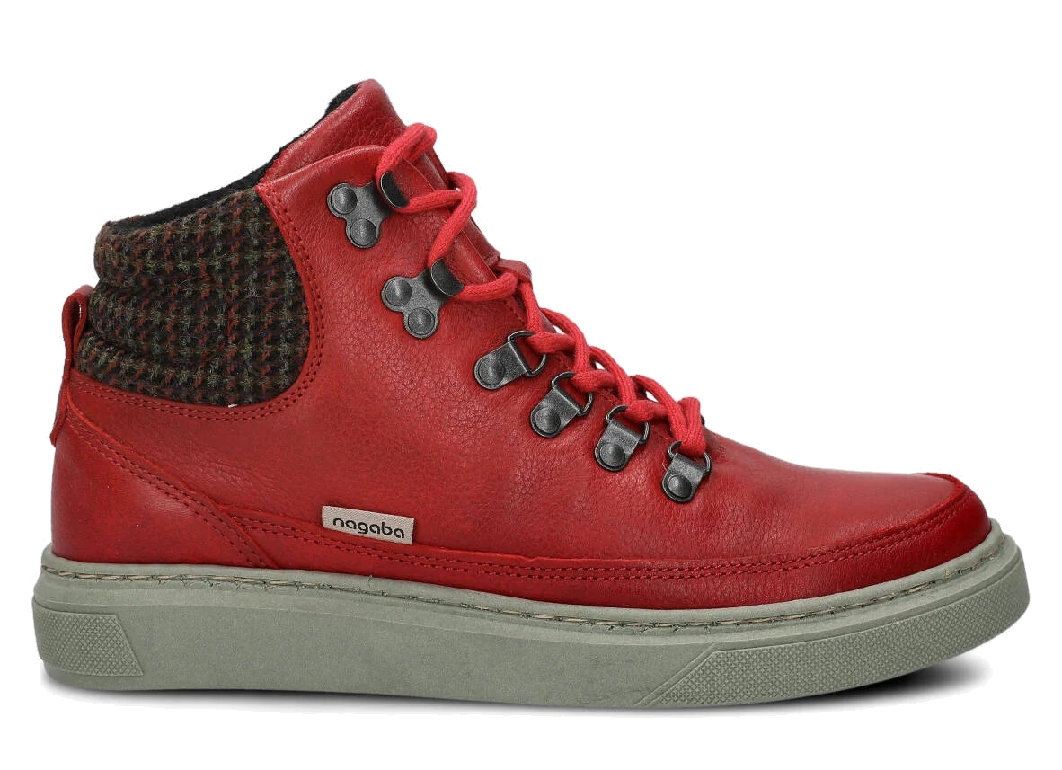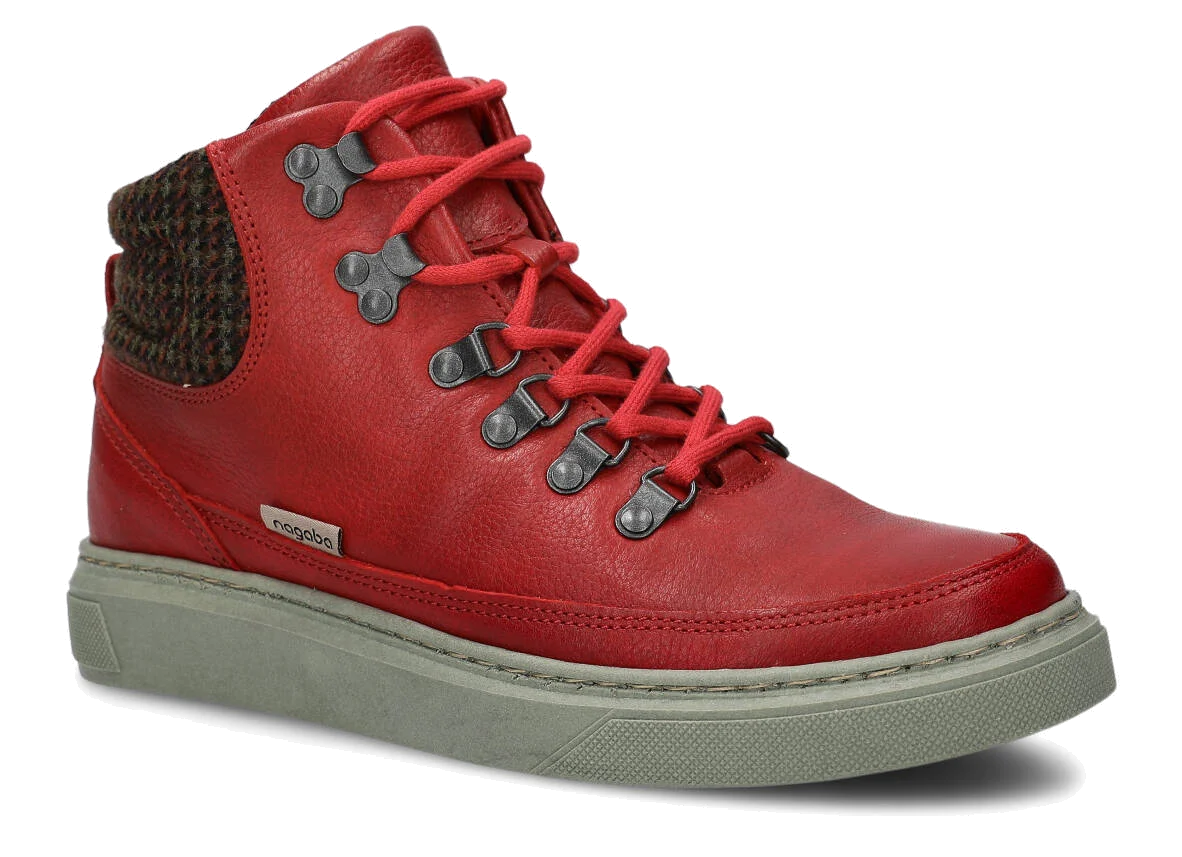 DÁMSKÉ KOTNÍKOVÉ BOTY NAGABA 617 ČERVENÁ MRAK KOŽENÉ + FLEECE - VELIKOST 37
