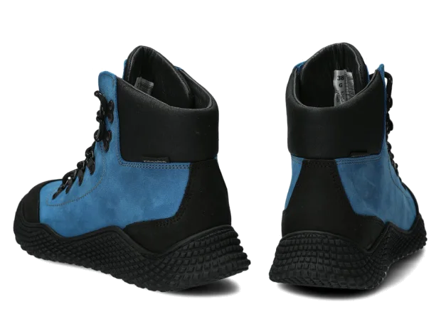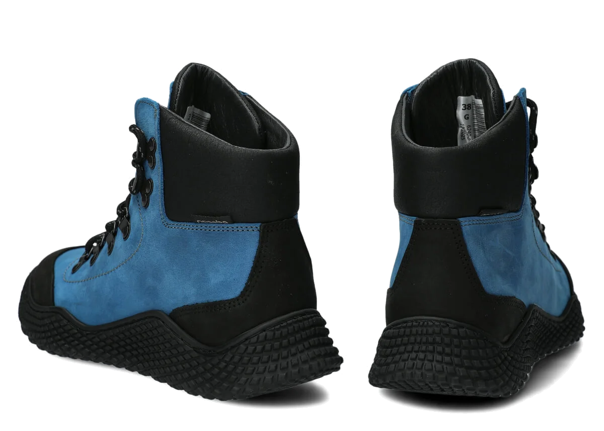 Dámské kotníkové boty Nagaba 624 kobalt crazy jsou modelem, který přesně odpovídá vkusu žen a dospívajících dívek – kombinují sportovní energii s každodenní elegancí. Vysoce střižený kotník, kontrastní spojení kobalt a černé crazy kůže a ruční výroba v Polsku zajišťují, že tyto dívčí kotníkové boty vypadají moderně, a přitom jsou mimořádně odolné a pohodlné.