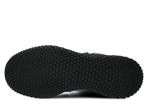 Svršek tvořený kombinací dvou druhů crazy kůže, dominantní kobalt přírodní crazy kůže v kombinaci s černými vložkami na špičce, patě a límci vytváří velmi charakteristický městský-outdoorový vzhled. Silná, masitá, olejovaná kůže s přírodními skvrnami, oděrkami a škrábanci – každý pár je trochu jiný, což dává pocit jedinečnosti.