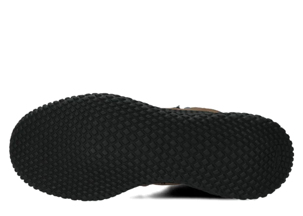 Svršek tvořený kombinací dvou druhů crazy kůže, dominantní olivová přírodní crazy kůže v kombinaci s černými vložkami na špičce, patě a límci vytváří velmi charakteristický městský-outdoorový vzhled. Silná, masitá, olejovaná kůže s přírodními skvrnami, oděrkami a škrábanci – každý pár je trochu jiný, což dává pocit jedinečnosti.