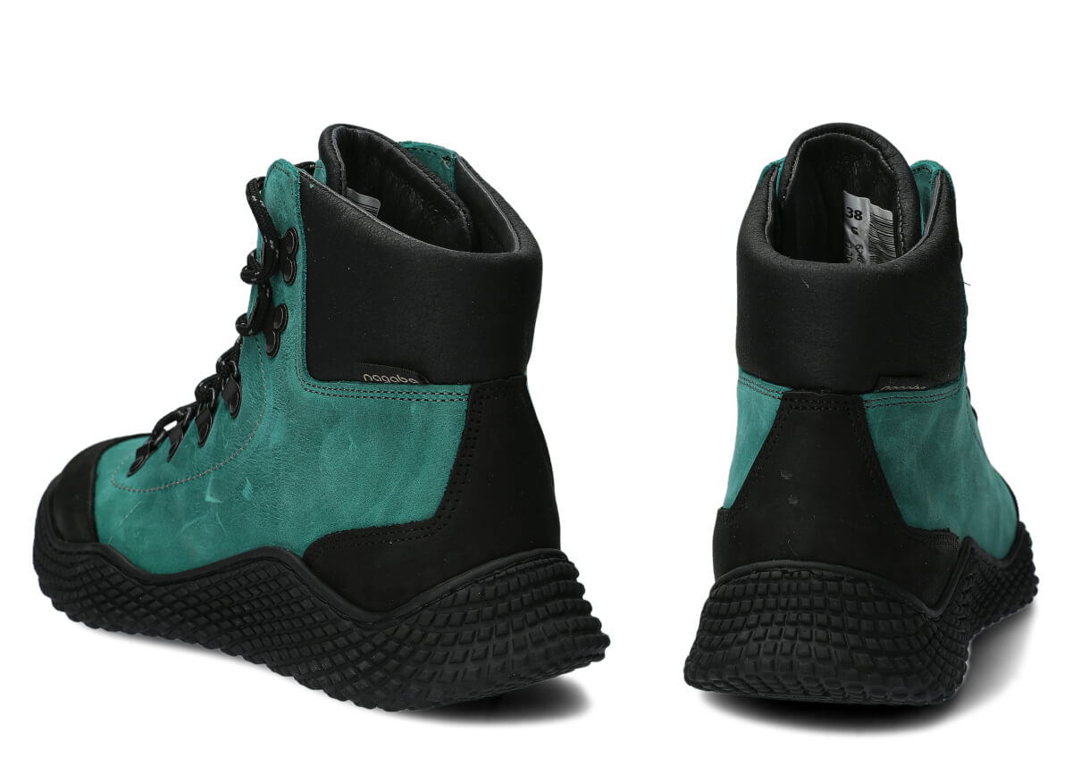 Dámské kotníkové boty Nagaba 624 smaragdová crazy jsou modelem, který přesně odpovídá vkusu žen a dospívajících dívek – kombinují sportovní energii s každodenní elegancí. Vysoce střižený kotník, kontrastní spojení smaragdové a černé crazy kůže a ruční výroba v Polsku zajišťují, že tyto dívčí kotníkové boty vypadají moderně, a přitom jsou mimořádně odolné a pohodlné.
