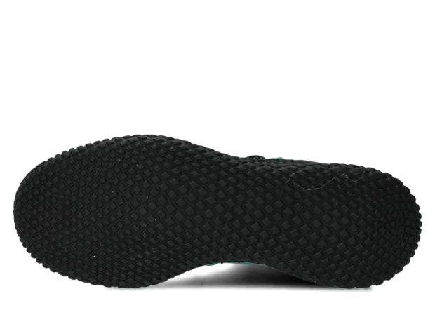 Svršek tvořený kombinací dvou druhů crazy kůže, dominantní smaragdová přírodní crazy kůže v kombinaci s černými vložkami na špičce, patě a límci vytváří velmi charakteristický městský-outdoorový vzhled. Silná, masitá, olejovaná kůže s přírodními skvrnami, oděrkami a škrábanci – každý pár je trochu jiný, což dává pocit jedinečnosti.