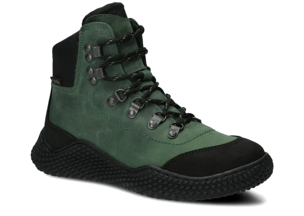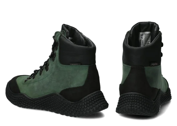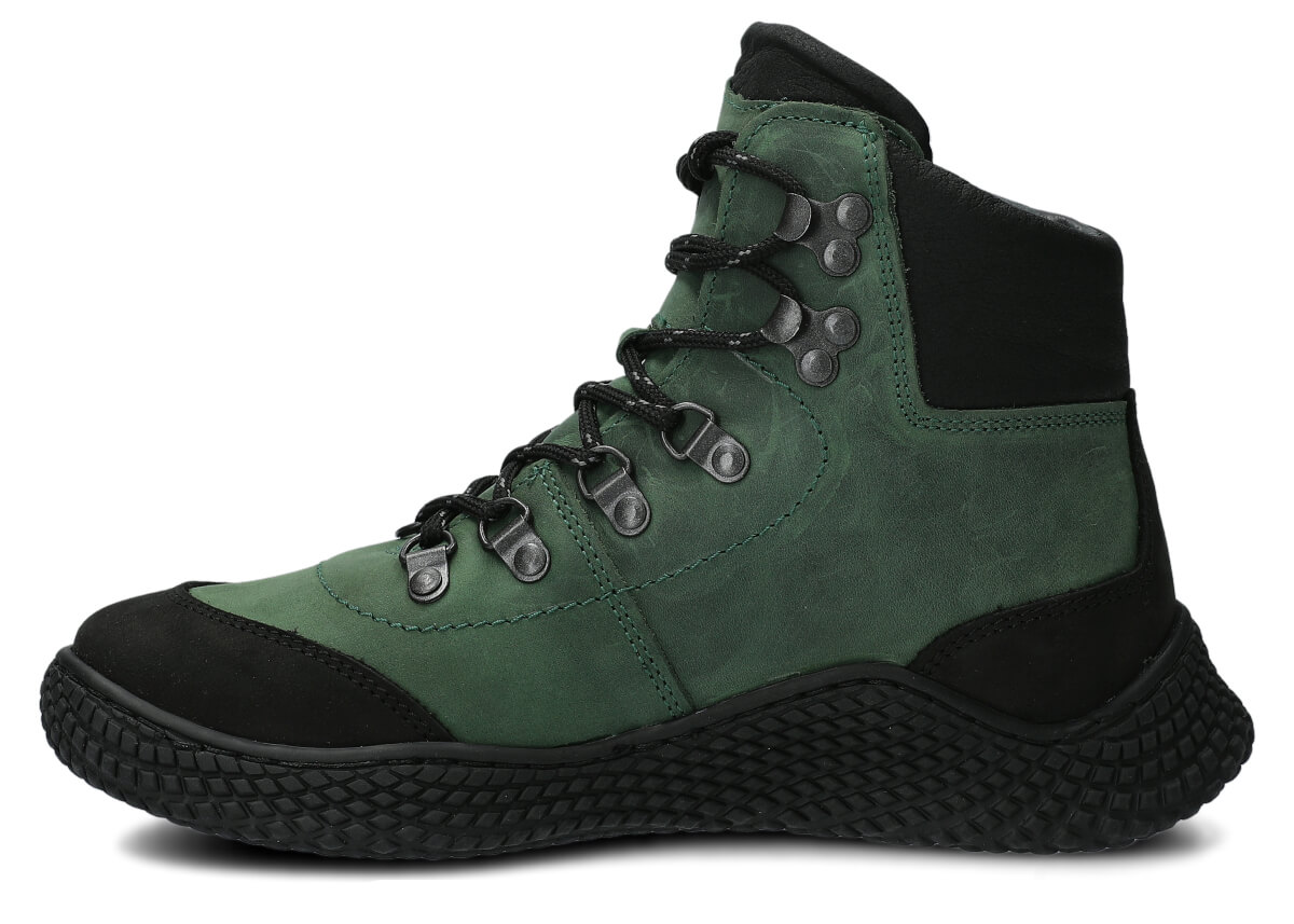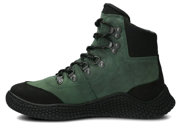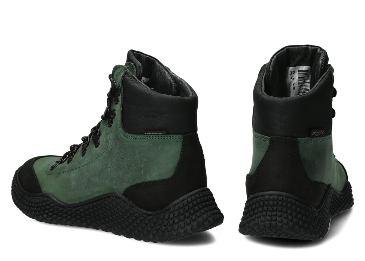 Dámské kotníkové boty Nagaba 624 zelená crazy jsou modelem, který přesně odpovídá vkusu žen a dospívajících dívek – kombinují sportovní energii s každodenní elegancí. Vysoce střižený kotník, kontrastní spojení zelená a černé crazy kůže a ruční výroba v Polsku zajišťují, že tyto dívčí kotníkové boty vypadají moderně, a přitom jsou mimořádně odolné a pohodlné.