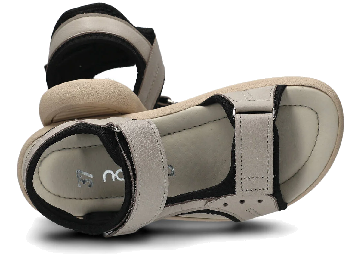 Tyto letní jasně popelavá sandály, model 025, na výrobu kterých jsme použili kůži rustic, jsou ideální pro horké letní počasí.