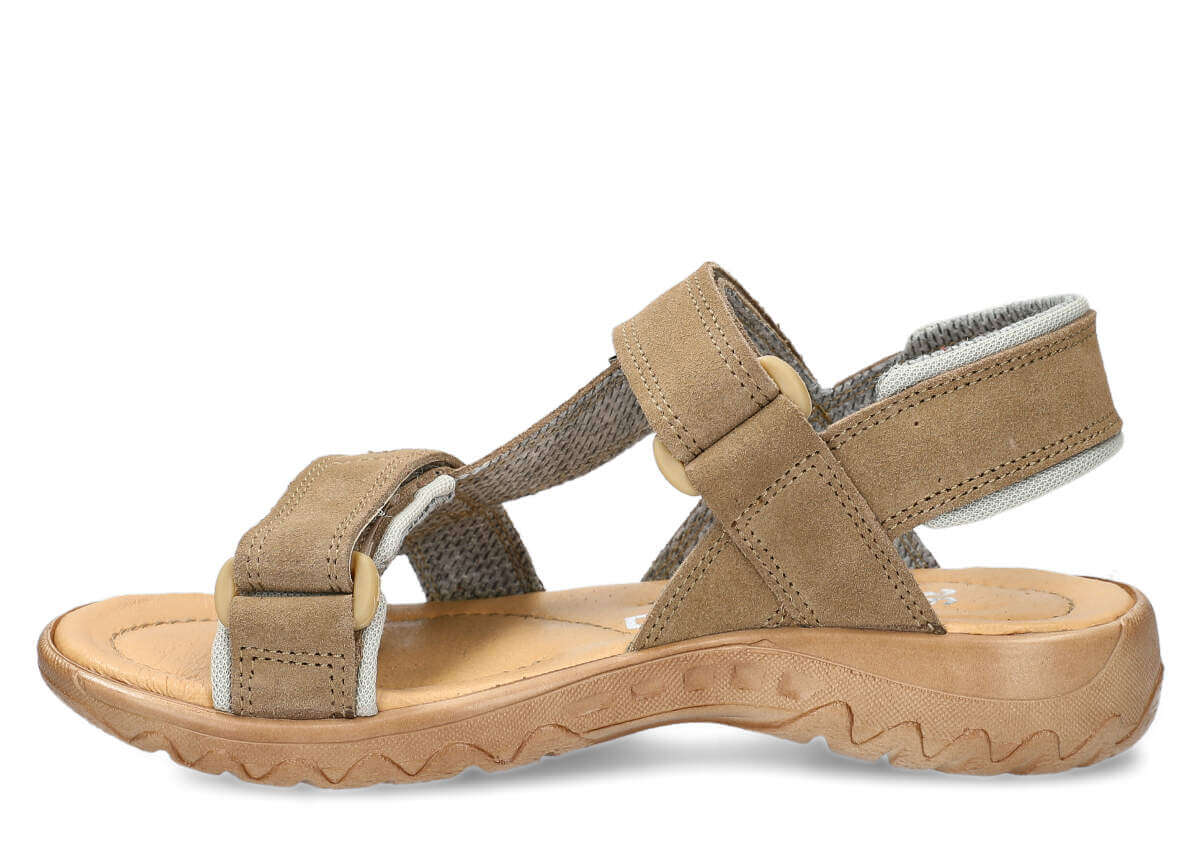 Tyto letní béžová sandály, model 168, na výrobu kterých jsme použili kůži velur, jsou ideální pro horké letní počasí.