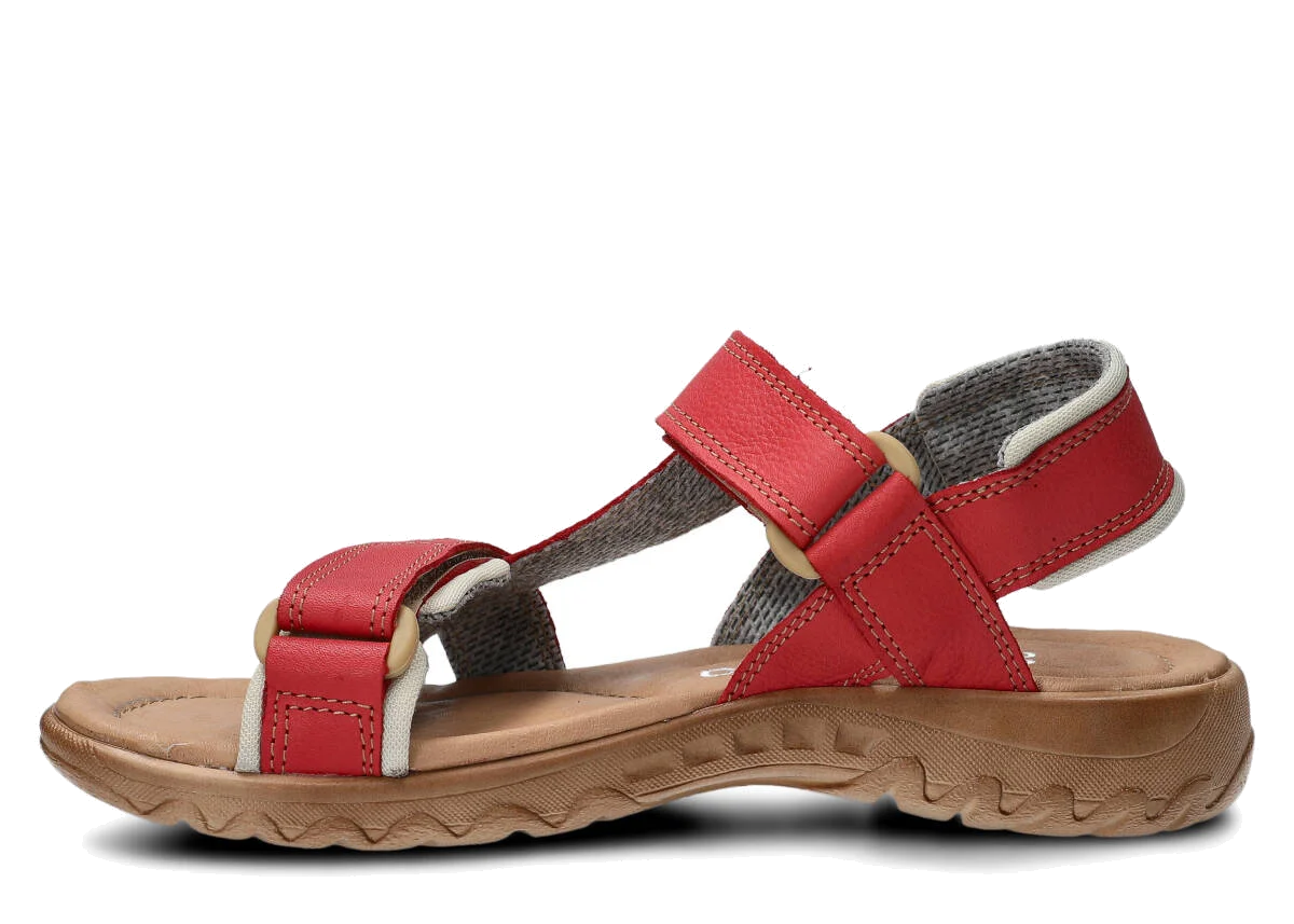 Tyto letní Červená sandály, model 168, na výrobu kterých jsme použili kůži rustic, jsou ideální pro horké letní počasí.