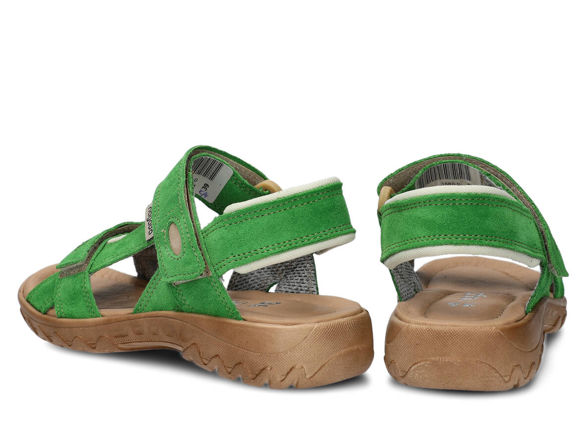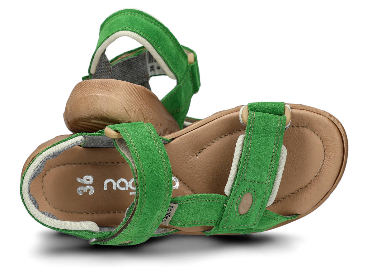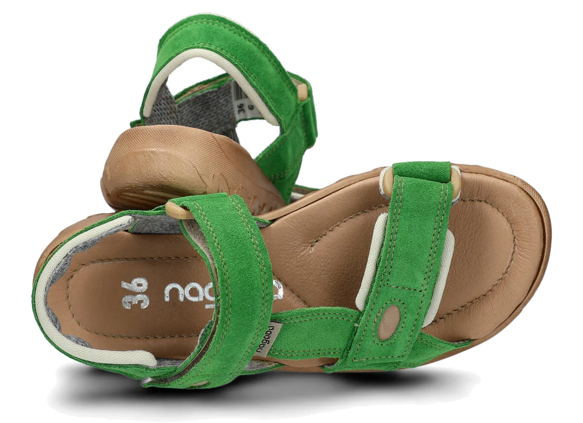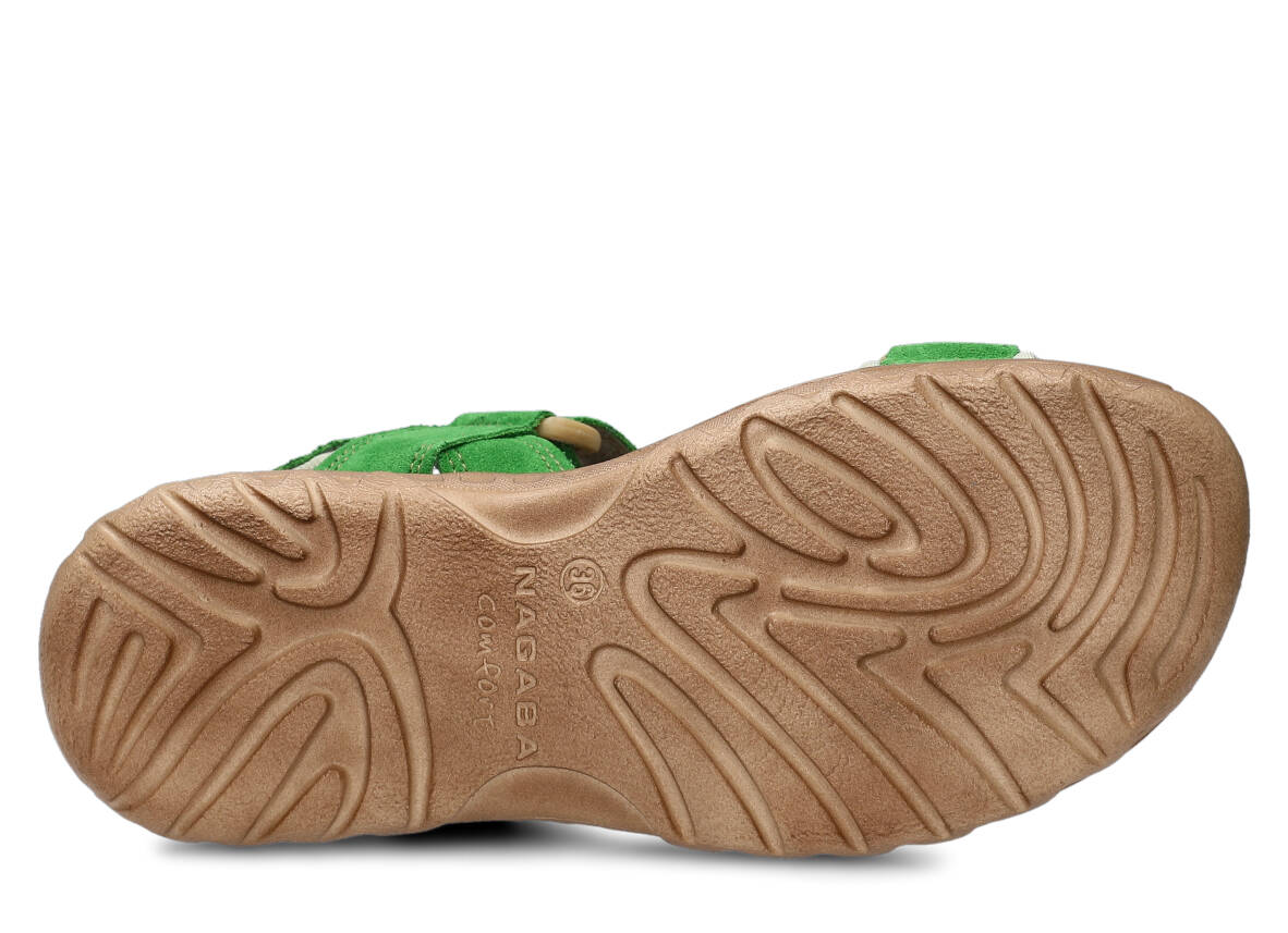 Tyto letní zelená tráva sandály, model 168, na výrobu kterých jsme použili kůži velur, jsou ideální pro horké letní počasí.