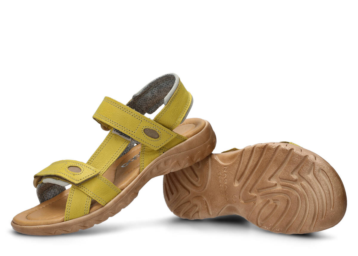 Tyto letní Žlutá sandály, model 168, na výrobu kterých jsme použili kůži rustic, jsou ideální pro horké letní počasí.