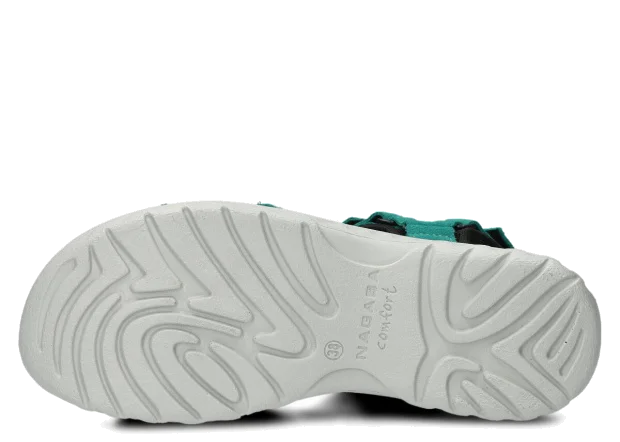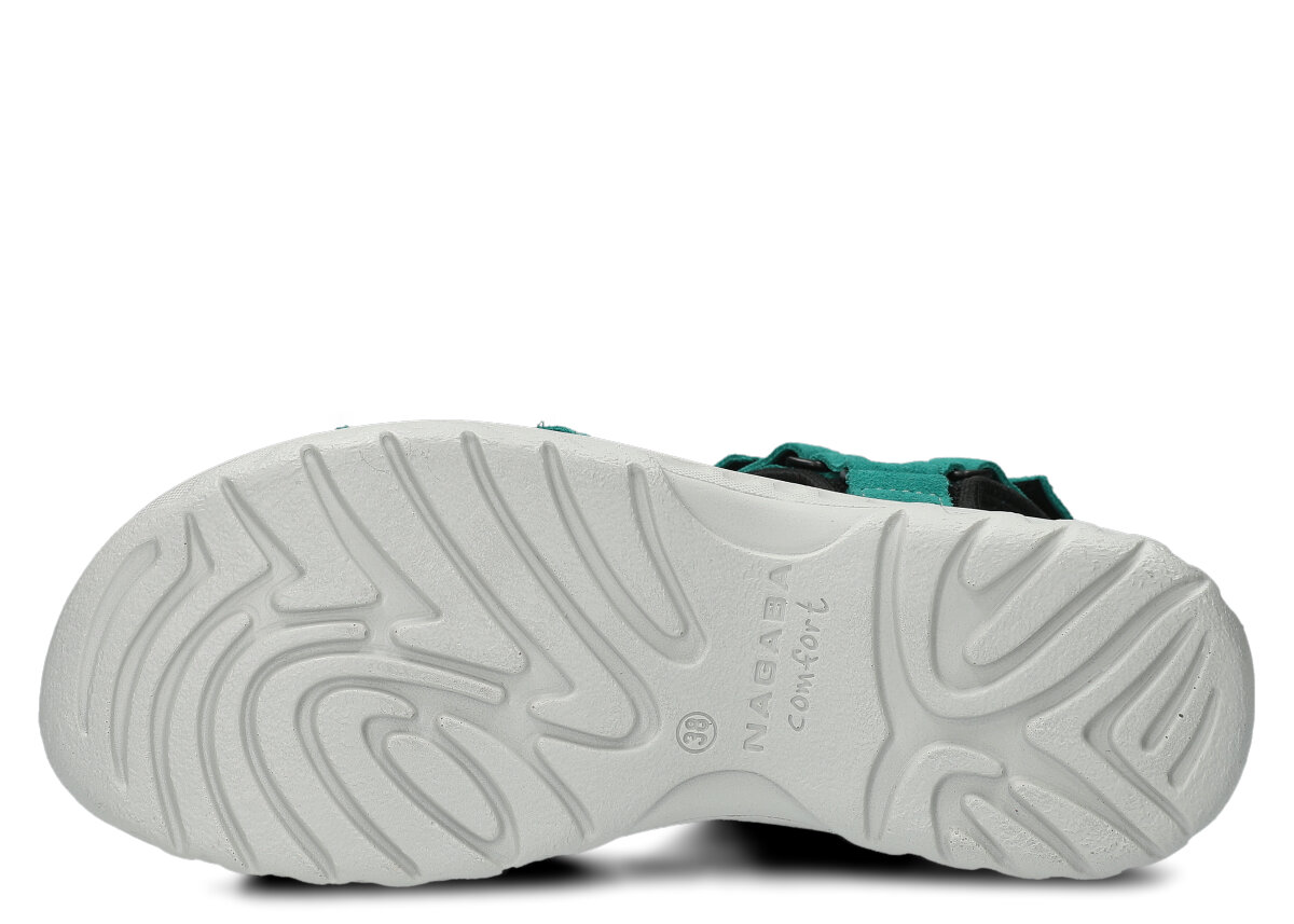 Díky použití přírodní kůže jsou dámské sandály Nagaba model 266 v barvě seledynu velurové kůže nejen velmi atraktivní, ale také vysoce funkční. Přírodní kůže je antialergenní materiál, bez škodlivých chemikálií, díky čemuž je obuv zcela bezpečná pro zdraví nohou. Kromě toho dámské sandály Nagaba model 266 z velurové kůže v barvě seledynu nezpůsobují vznik puchýřů, kuřích ok a podráždění. Tyto sandály Nagaba se rychle a pohodlně zapínají suchými zipy, což umožňuje dokonalé přizpůsobení noze. Profilovaná a pohodlná polyuretanová podrážka v univerzální šedé barvě zaručuje lehkost a pružnost při chůzi.