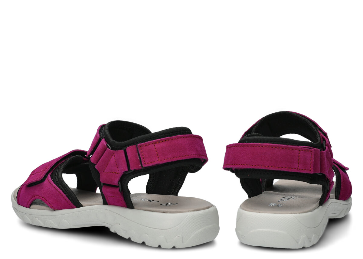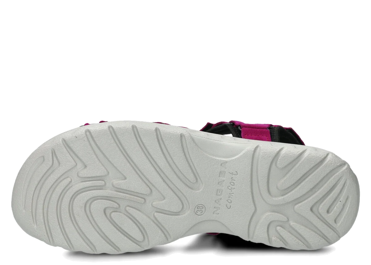 Díky použití přírodní kůže jsou dámské sandály Nagaba model 266 z fialového velúrového materiálu nejen velmi elegantní, ale především vysoce funkční. Přírodní kůže je antialergický materiál, bez škodlivých chemických látek, což zajišťuje, že obuv je zcela bezpečná pro zdraví nohou. Navíc sandály Nagaba model 266 z fialového velúru nezpůsobují puchýře, mozoly nebo podráždění. Tyto sandály se rychle a pohodlně zapínají suchým zipem, který umožňuje dokonalé přizpůsobení noze. Profilovaná a pohodlná polyuretanová podrážka v univerzální šedé barvě zaručuje lehkost a pružnost při chůzi.