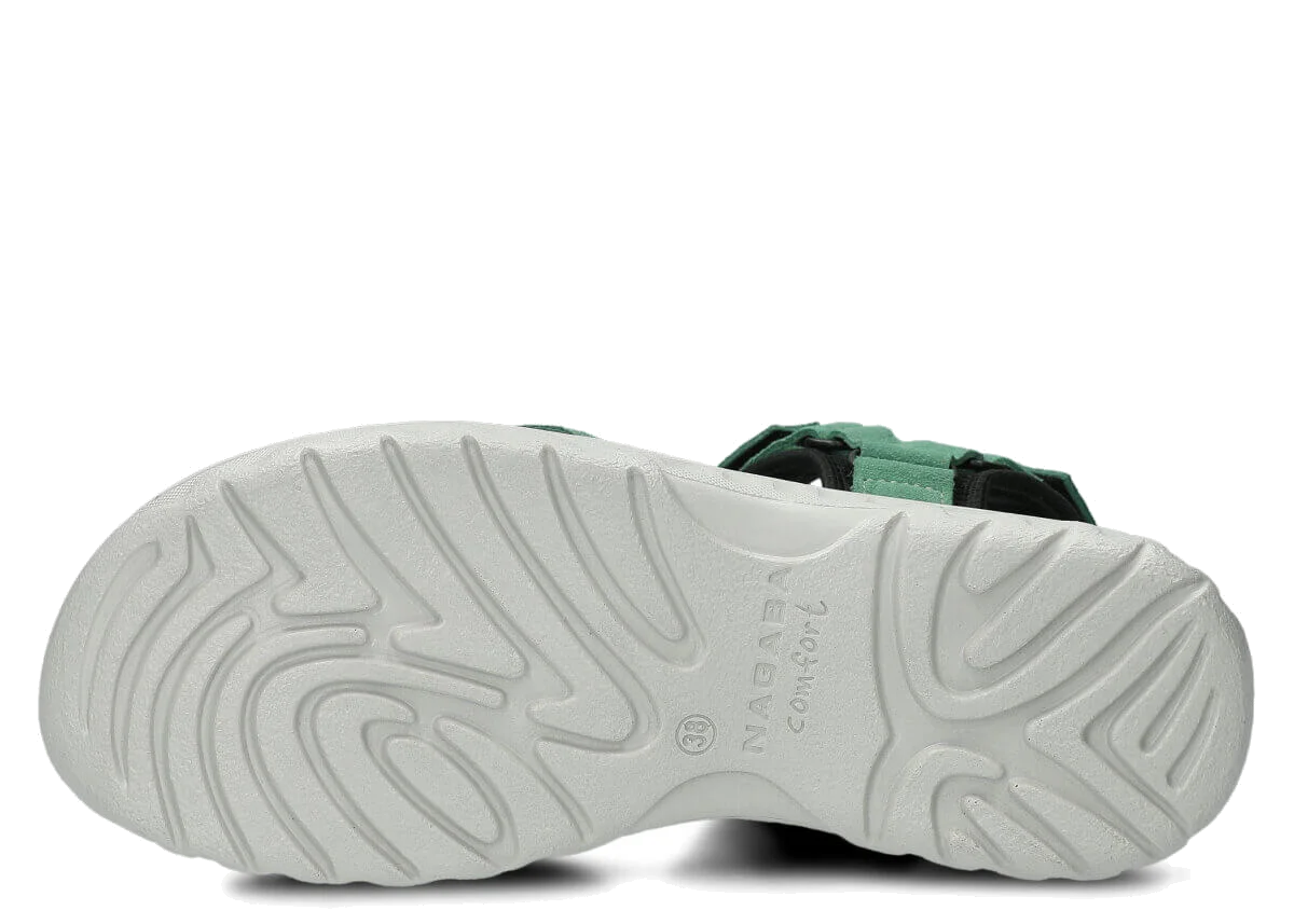 Právě díky použití přírodní kůže jsou dámské mátové velurové kožené sandály Nagaba 266 nejen velmi pěkné, ale především vysoce funkční. Přírodní kůže je antialergický materiál, neobsahuje škodlivé chemické látky, takže obuv je zcela bezpečná pro zdraví nohou. Zároveň dámské kožené sandály Nagaba 266 mátové velur nepřispívají ke vzniku odřenin, otlaků a podráždění. Představené sandály Nagaba se rychle a pohodlně zapínají pomocí pásků na suchý zip - umožňují dokonalé přizpůsobení noze. Tvarovaná a pohodlná polyuretanová podrážka v univerzální šedé barvě zaručuje lehkost a flexibilitu při chůzi.