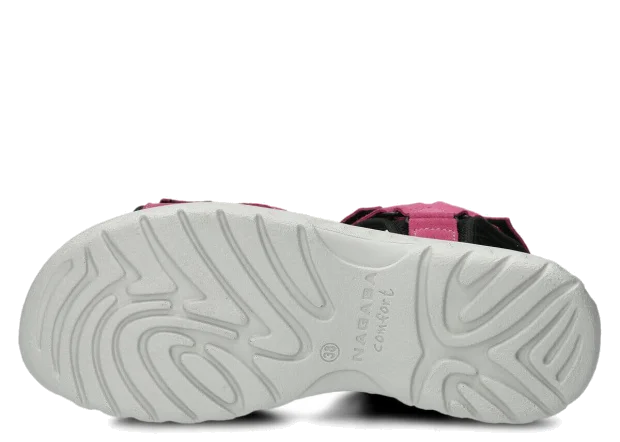 Právě díky použití přírodní kůže jsou dámské růžové velurové kožené sandály Nagaba 266 nejen velmi pěkné, ale především vysoce funkční. Přírodní kůže je antialergický materiál, neobsahuje škodlivé chemické látky, takže obuv je zcela bezpečná pro zdraví nohou. Zároveň dámské kožené sandály Nagaba 266 růžové velur nepřispívají ke vzniku odřenin, otlaků a podráždění. Představené sandály Nagaba se rychle a pohodlně zapínají pomocí pásků na suchý zip - umožňují dokonalé přizpůsobení noze. Tvarovaná a pohodlná polyuretanová podrážka v univerzální šedé barvě zaručuje lehkost a flexibilitu při chůzi.