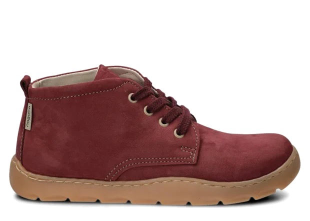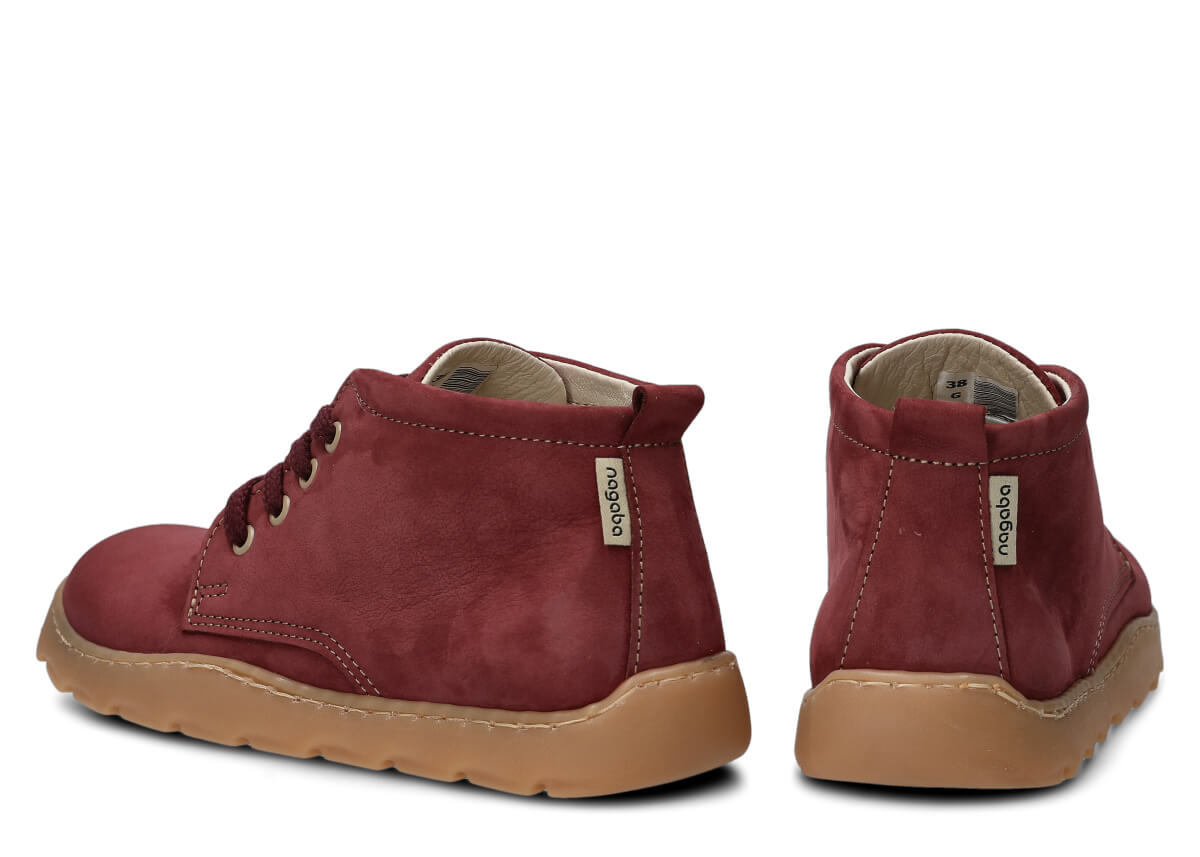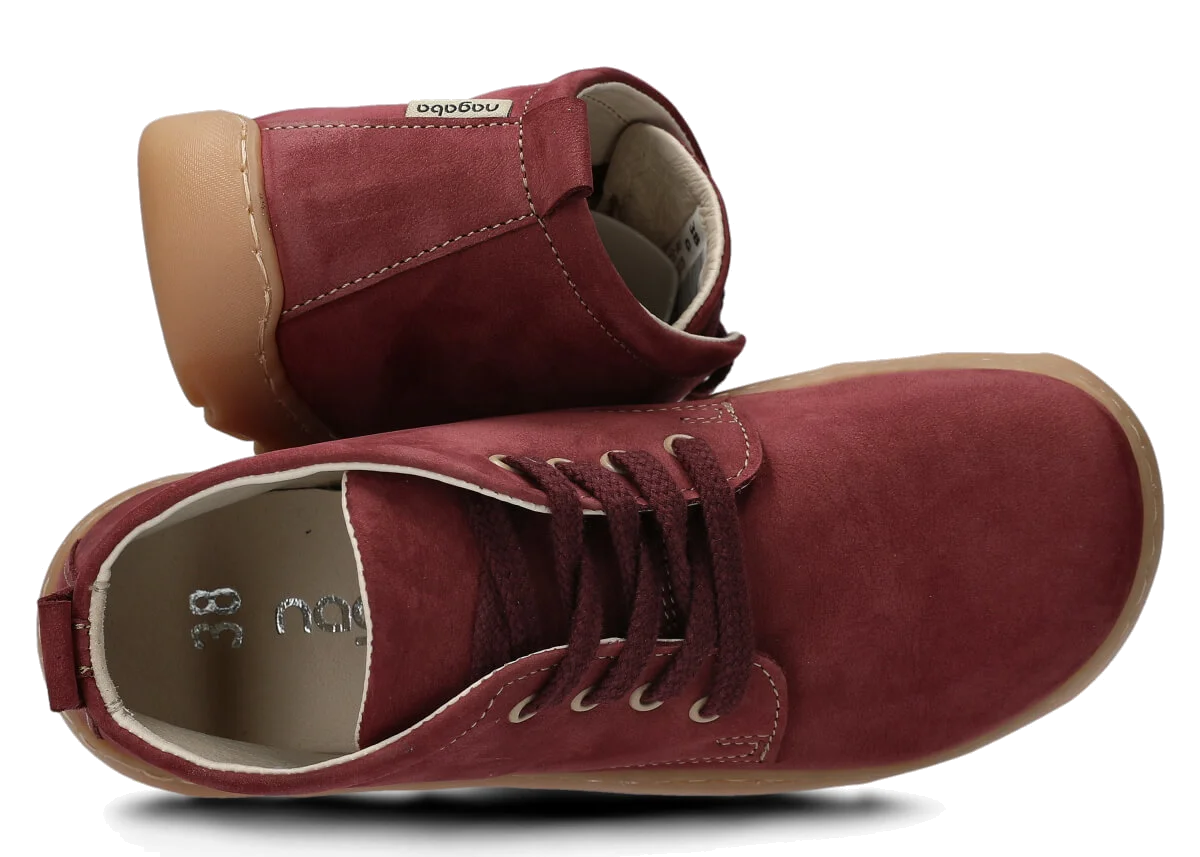Široké dámské kotníkové boty Nagaba 631 bordó samuel kožené – komfort a styl barefoot Model Nagaba 631 je vyšší varianta našeho oblíbeného modelu 630 – ideální pro všechny, kdo hledají kotníkové barefoot boty.