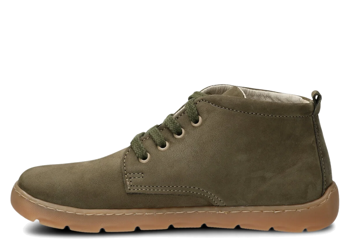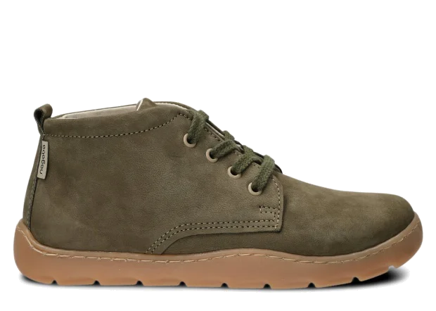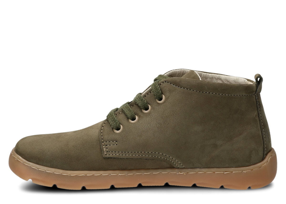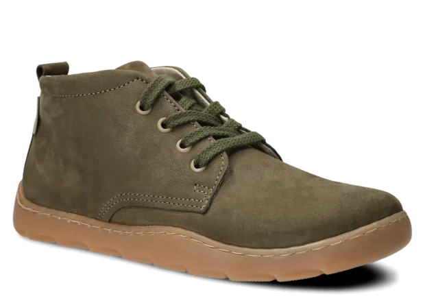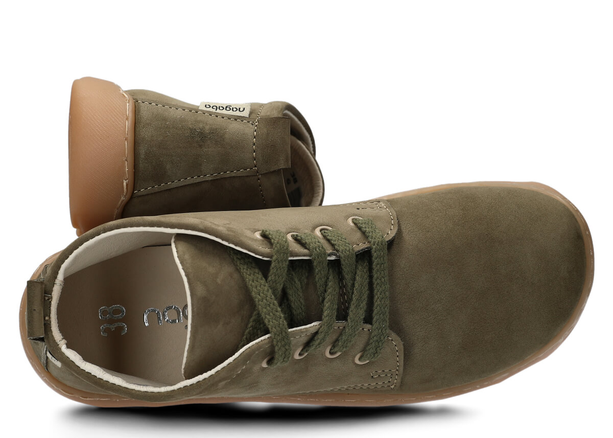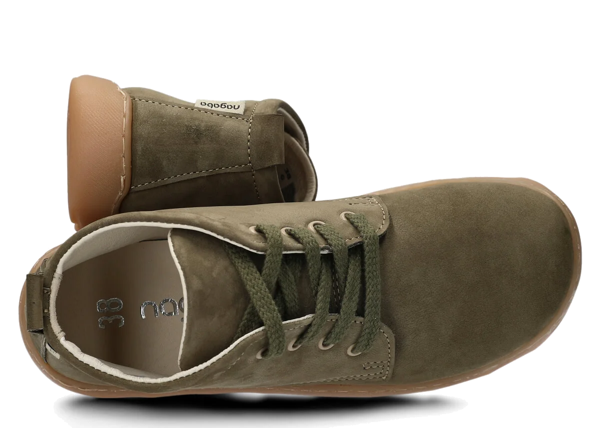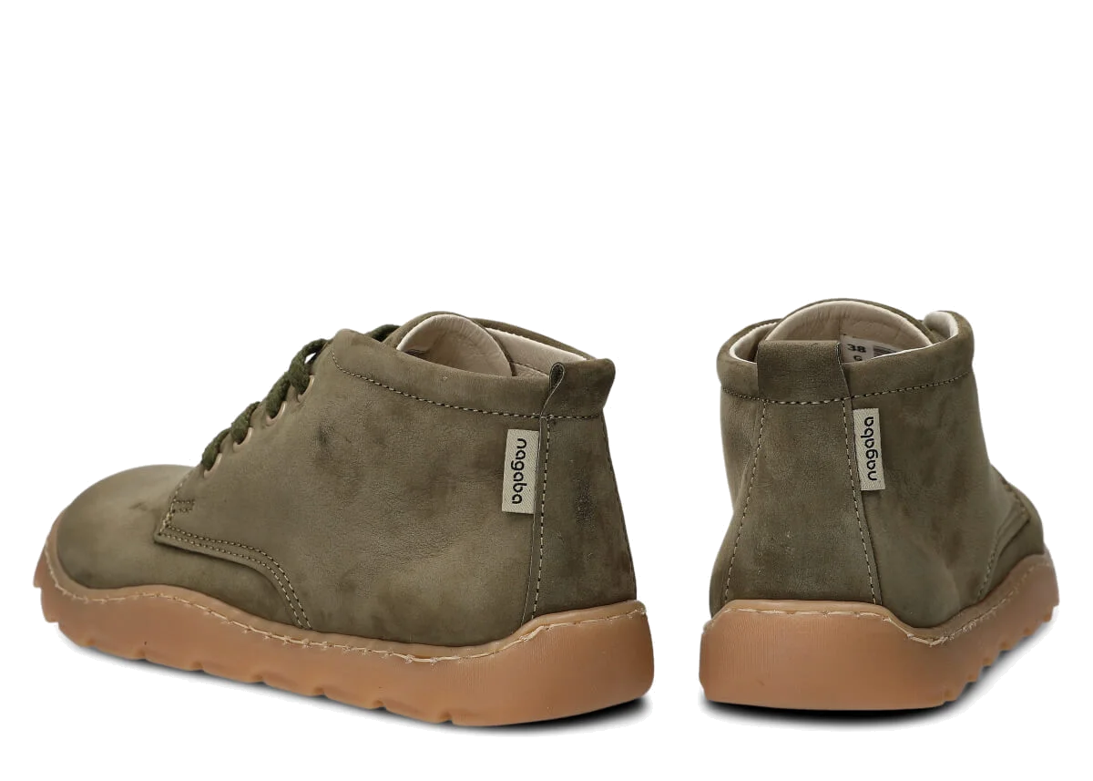 Široké dámské kotníkové boty Nagaba 631 khaki samuel kožené – komfort a styl barefoot Model Nagaba 631 je vyšší varianta našeho oblíbeného modelu 630 – ideální pro všechny, kdo hledají kotníkové barefoot boty.