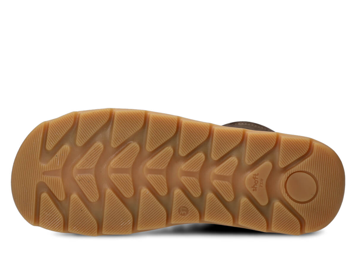 Černá podešev z TR-termokaučuku – odolná, neklouzavá, lehce pružná a krásně kontrastuje s barvou svršku