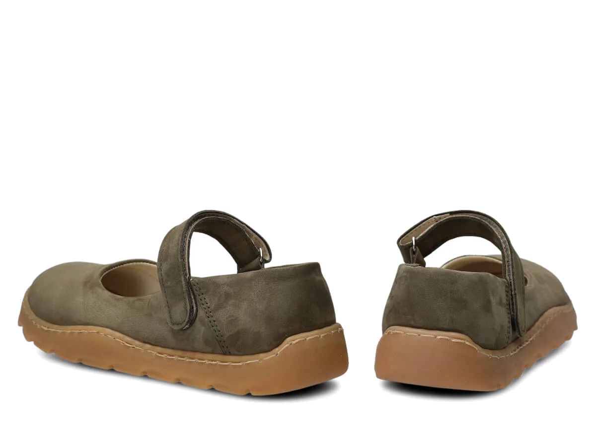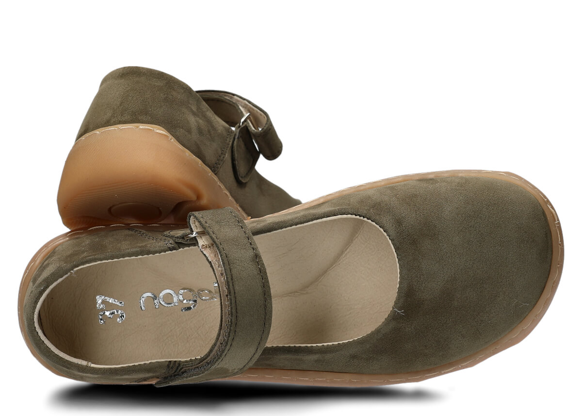 Dámské široké polobotky, baleríny NAGABA 632 khaki samuel kožené