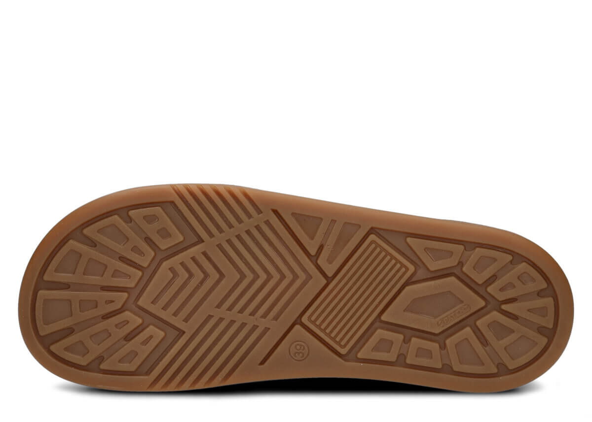 Navržený s důrazem na komfort, má polobota úplně placou, protiskluzovou podrážku vyrobenou z kvalitního TR-termoplastu, odolného proti oděru a zajišťující stabilní a jistou trakci na různých površích. Široký nosník nevytlačuje prsty, což zaručuje pocit uvolnění a zdraví při každodenním nošení.