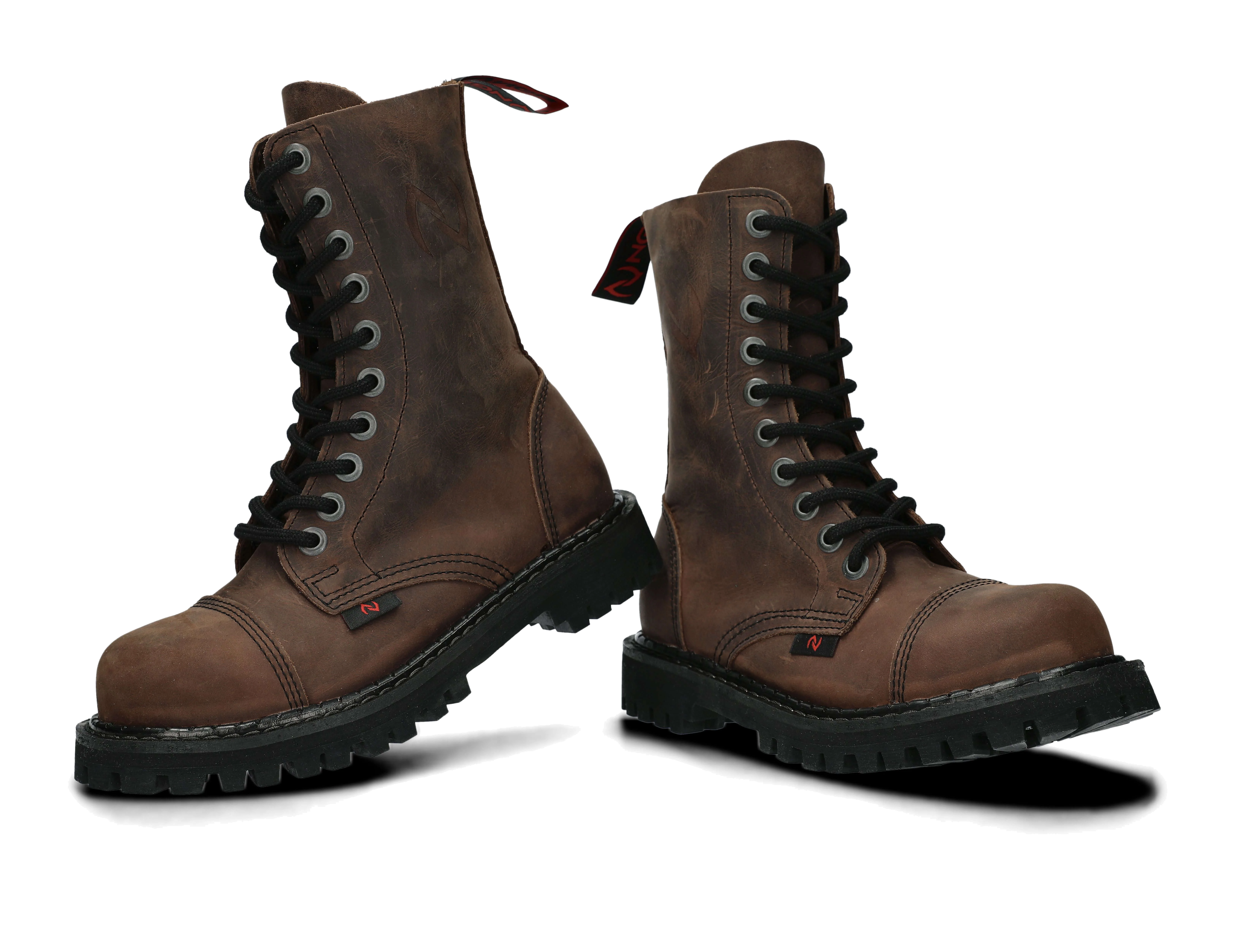 Vysoce odolný typ hladké kůže crazy, ze které jsou tyto vysoké boty vyrobeny, pochází přímo z místních koželužen a podrážka je vyrobena z polské gumy.