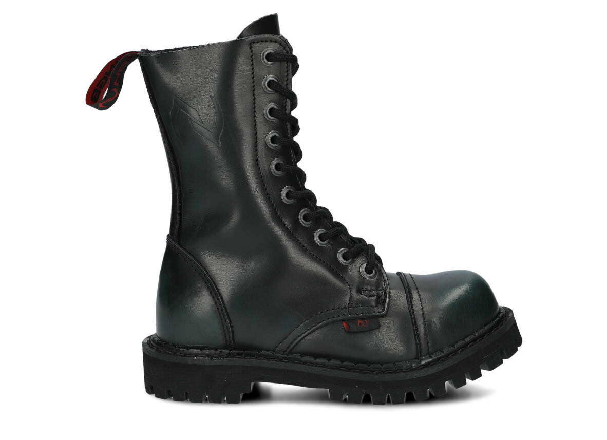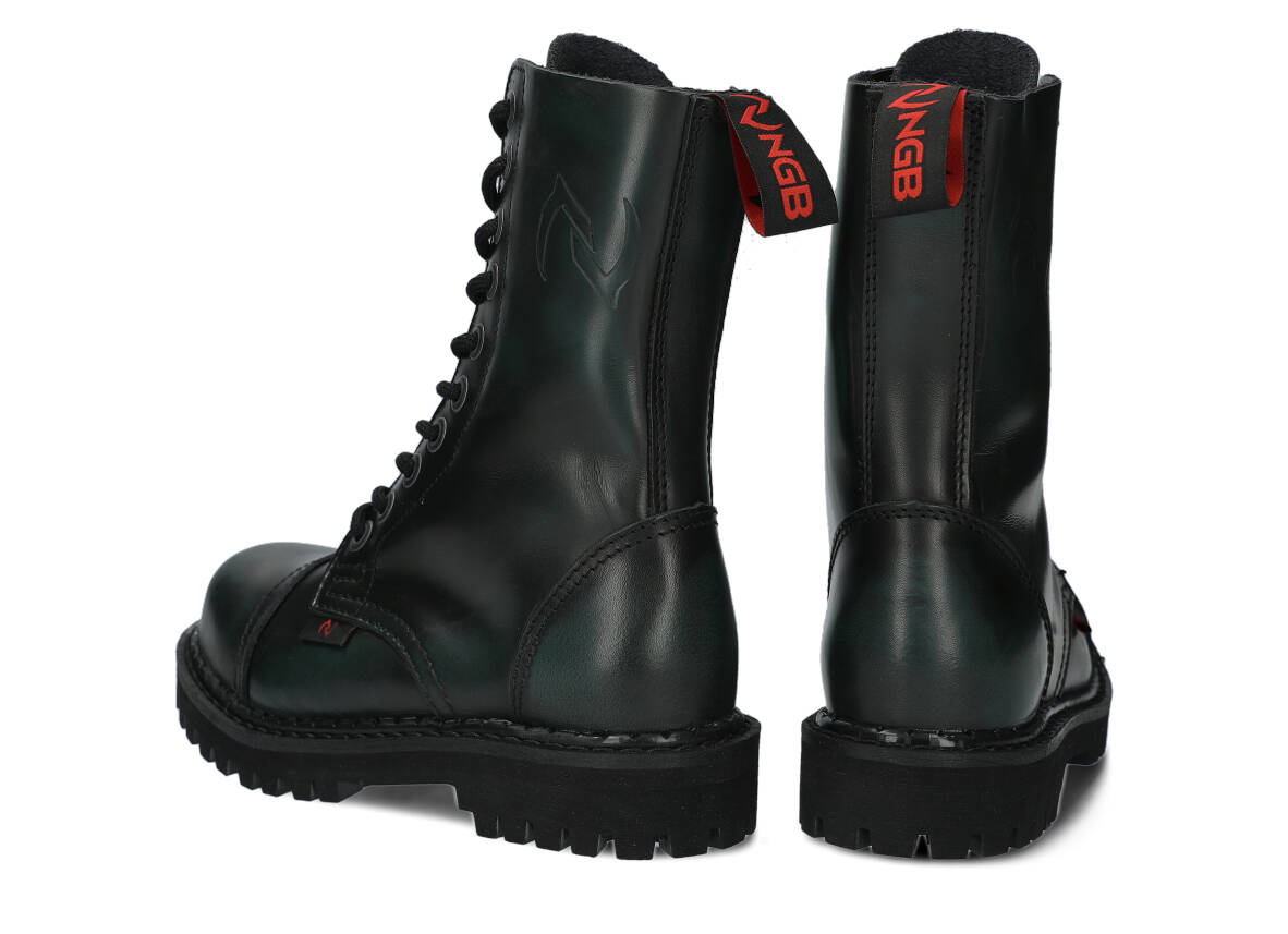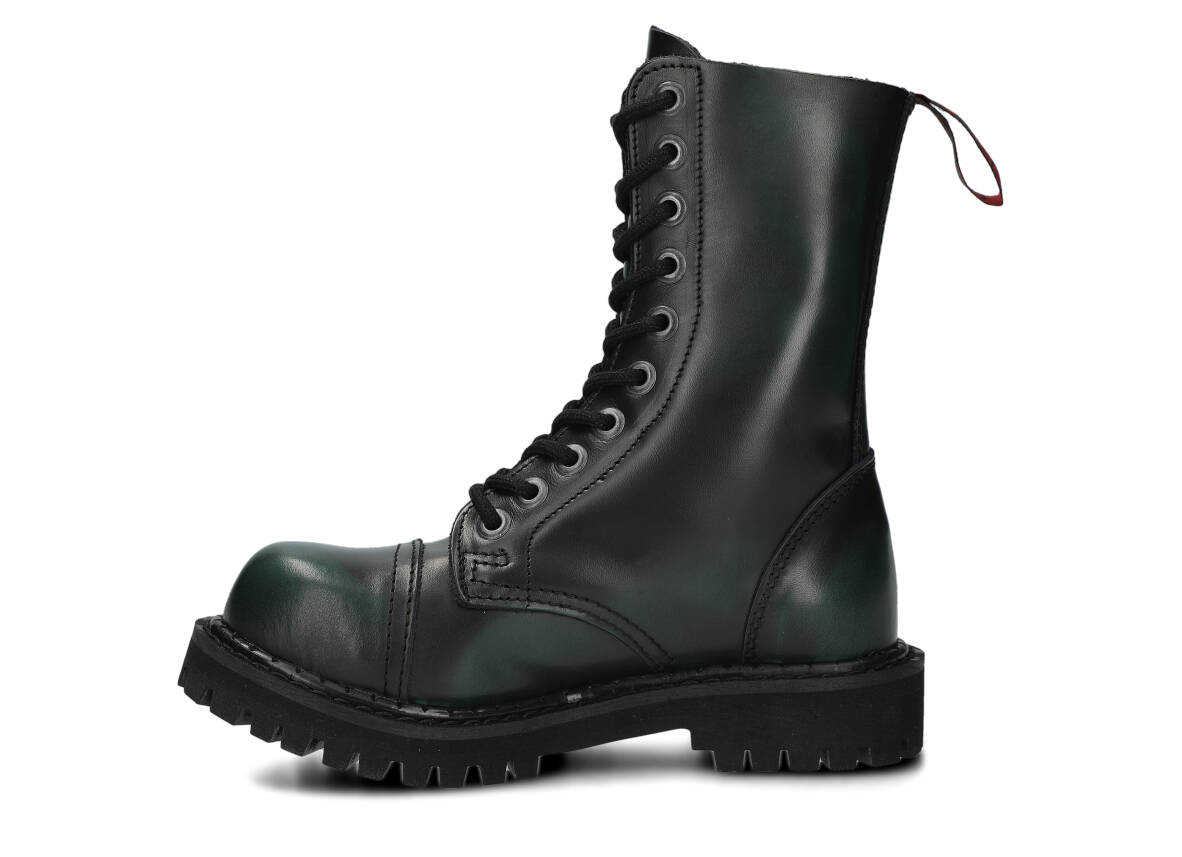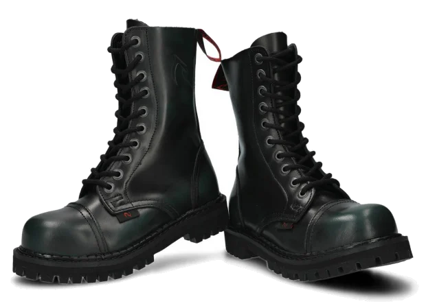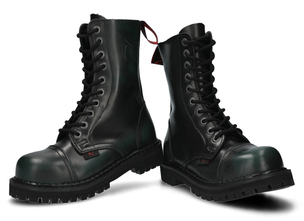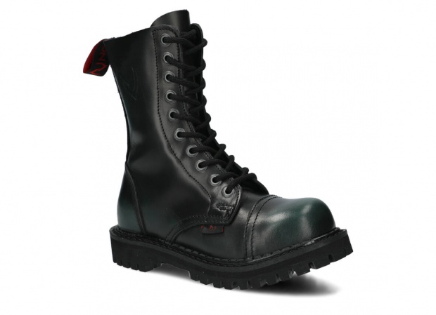 Nabízené zelená-černé glady s 10 dírkami byly vyrobeny, aby poskytovaly nejlepší pohodlí. Precizní provedení. Podrážka je vyrobena z pravé polské gumy s ozdobnými šrouby a kovovým logem značky.