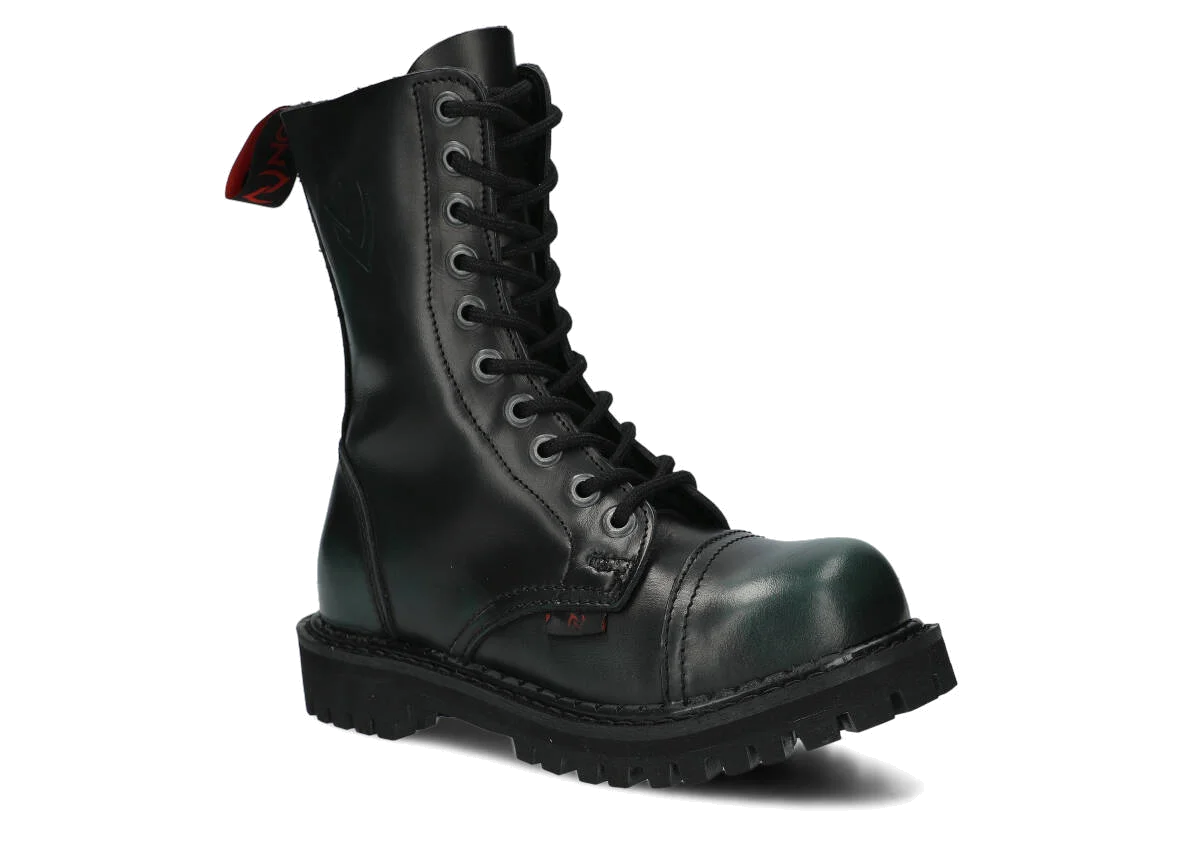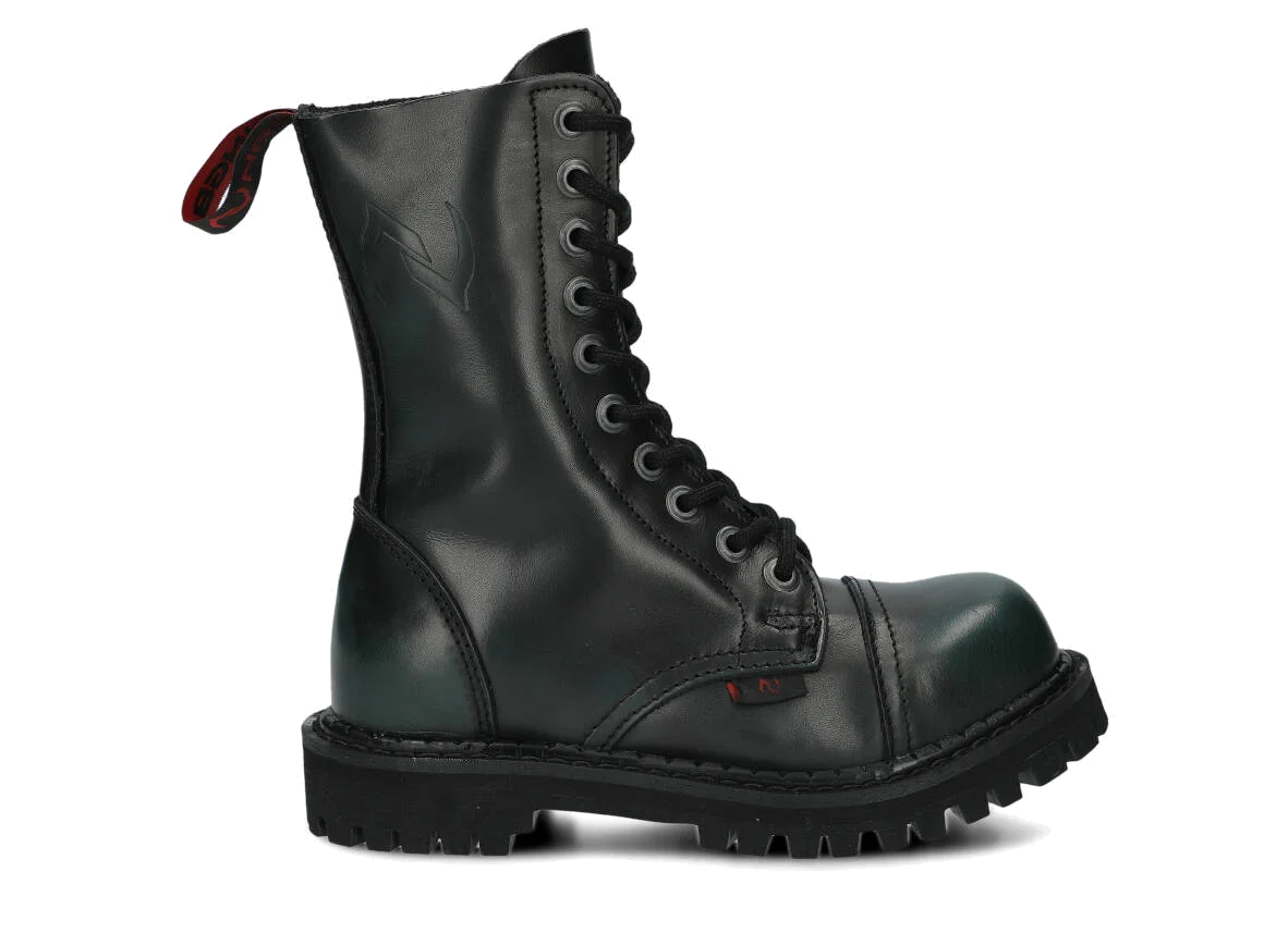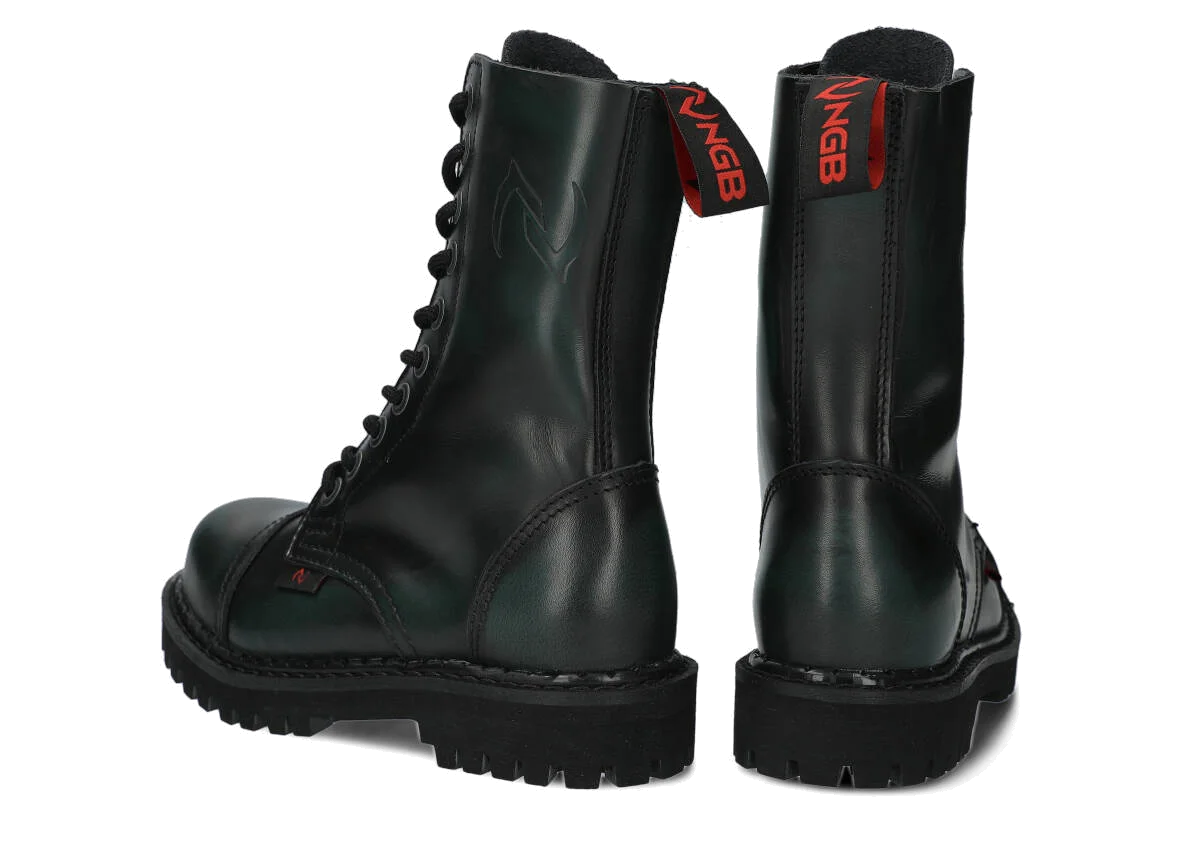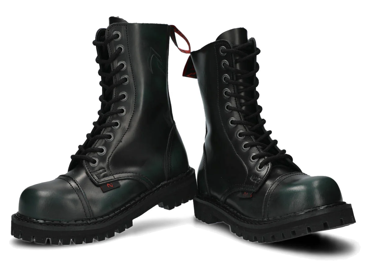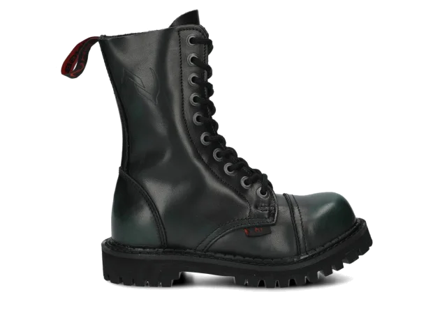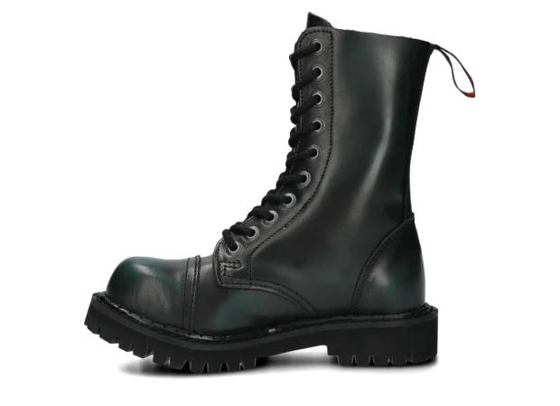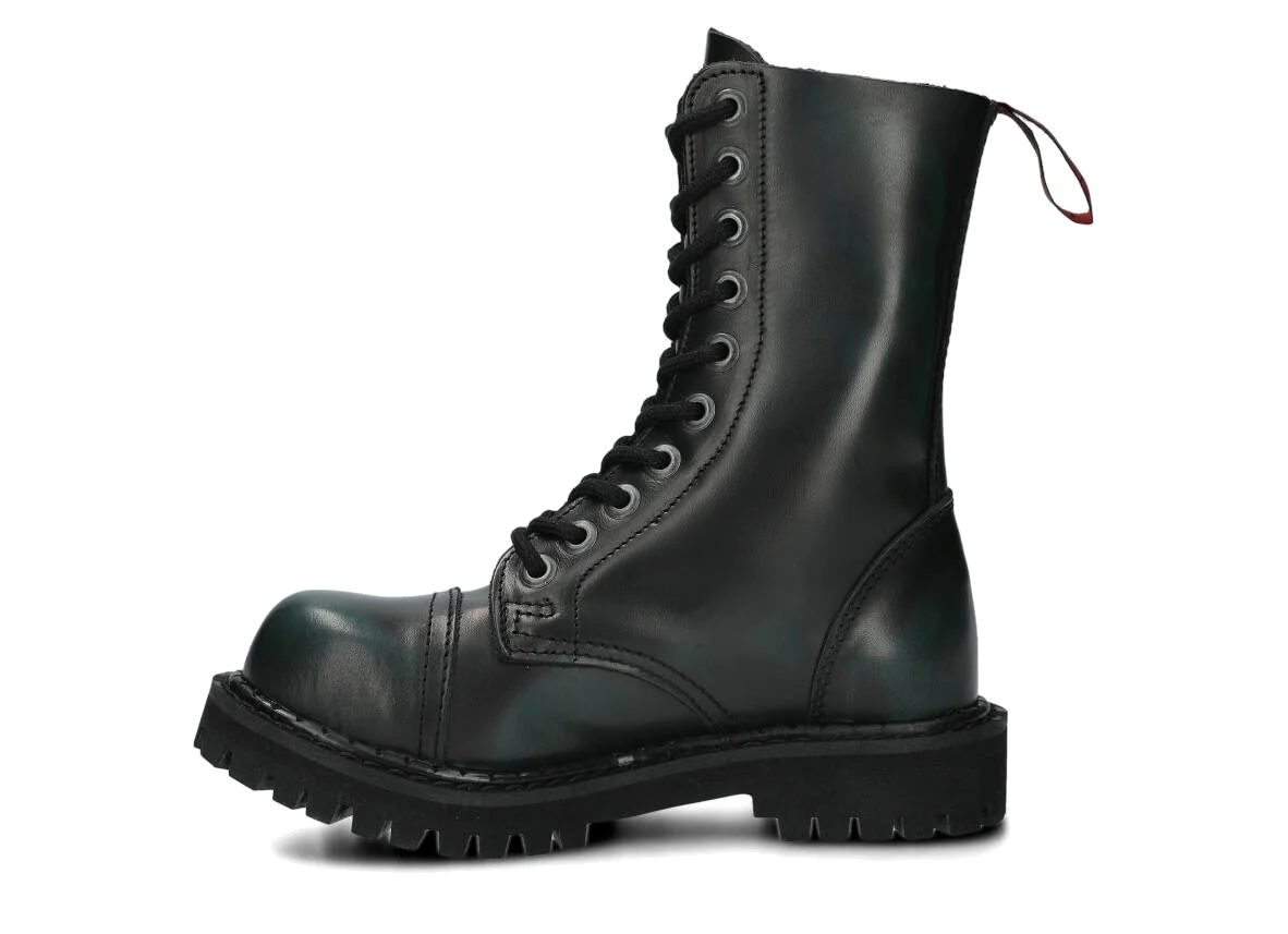 Nabízené zelená-černé glady s 10 dírkami byly vyrobeny, aby poskytovaly nejlepší pohodlí. Precizní provedení. Podrážka je vyrobena z pravé polské gumy s ozdobnými šrouby a kovovým logem značky.