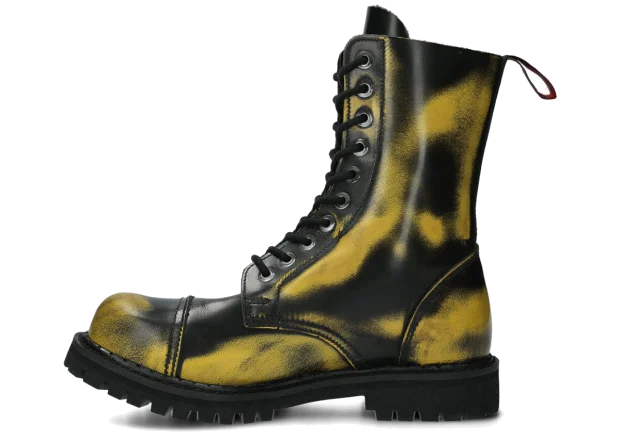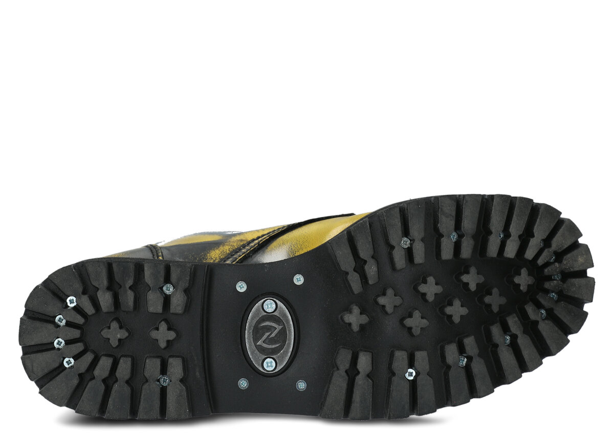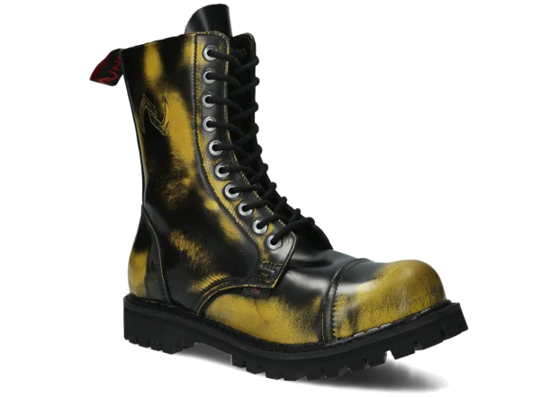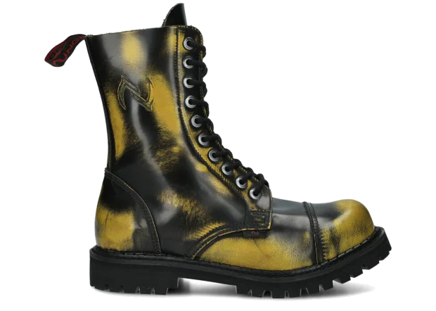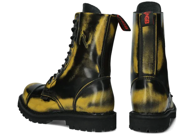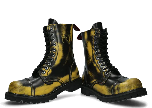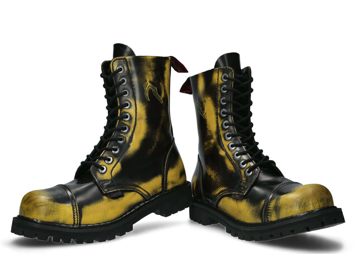 Nabízené Žlutá-černé glady s 10 dírkami byly vyrobeny, aby poskytovaly nejlepší pohodlí. Precizní provedení. Podrážka je vyrobena z pravé polské gumy s ozdobnými šrouby a kovovým logem značky.