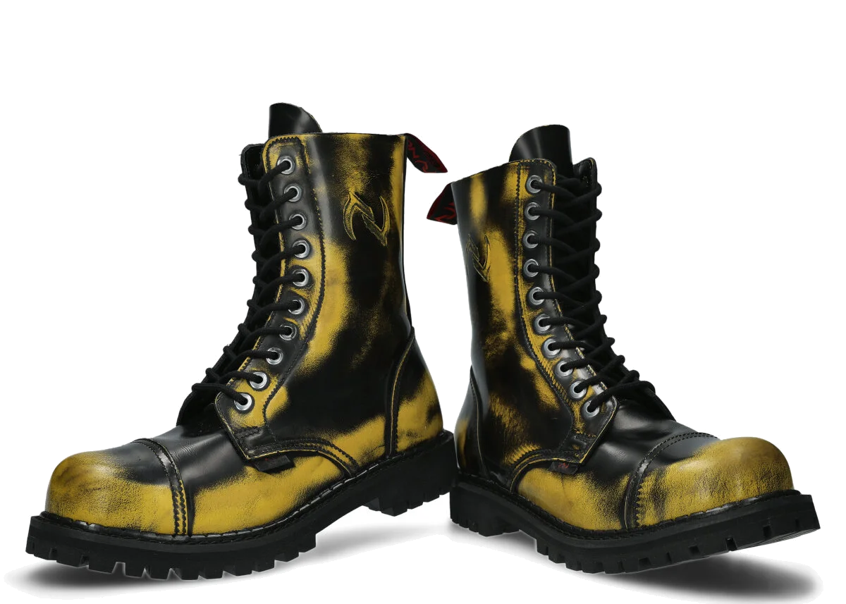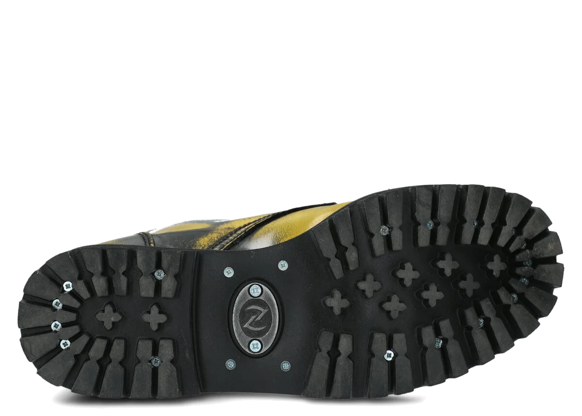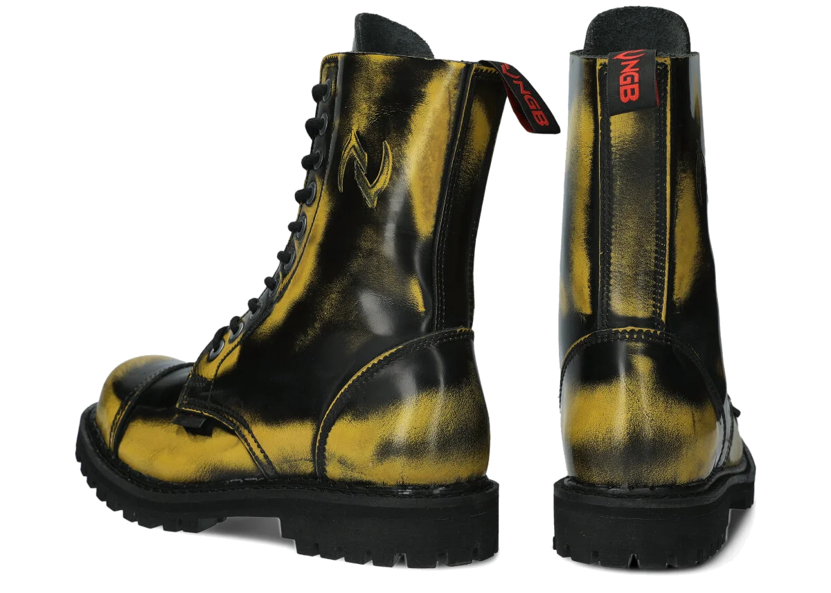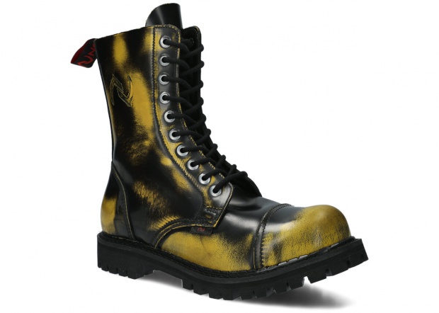 Nabízené Žlutá-černé glady s 10 dírkami byly vyrobeny, aby poskytovaly nejlepší pohodlí. Precizní provedení. Podrážka je vyrobena z pravé polské gumy s ozdobnými šrouby a kovovým logem značky.