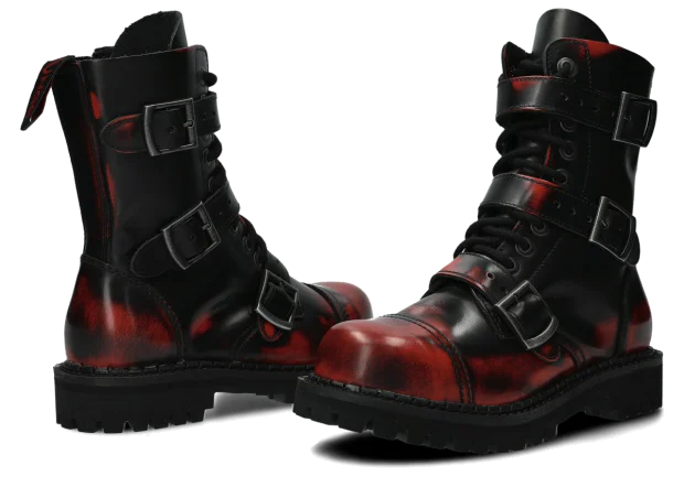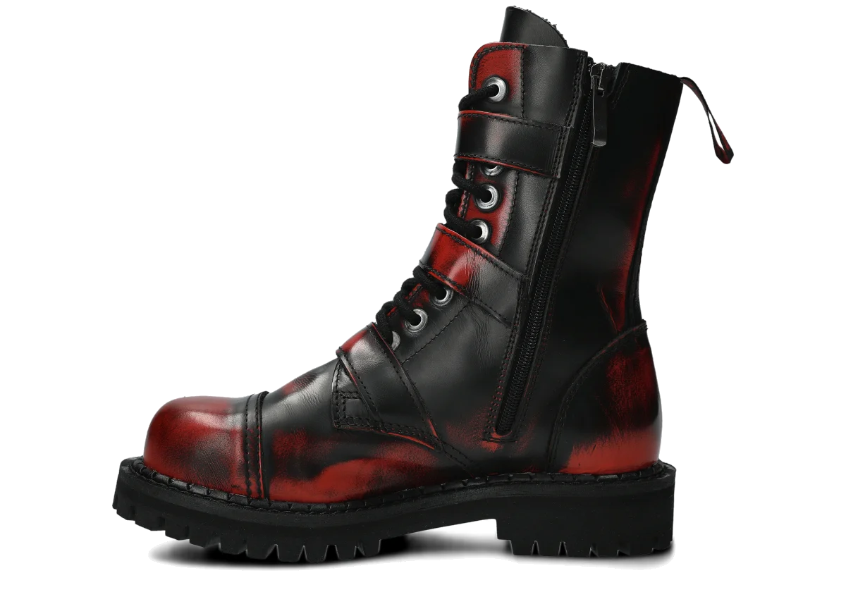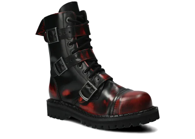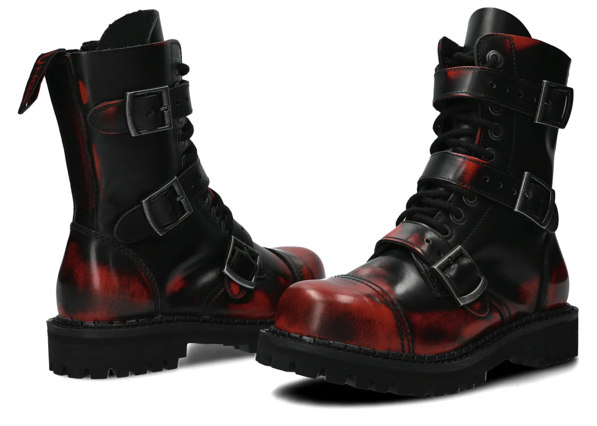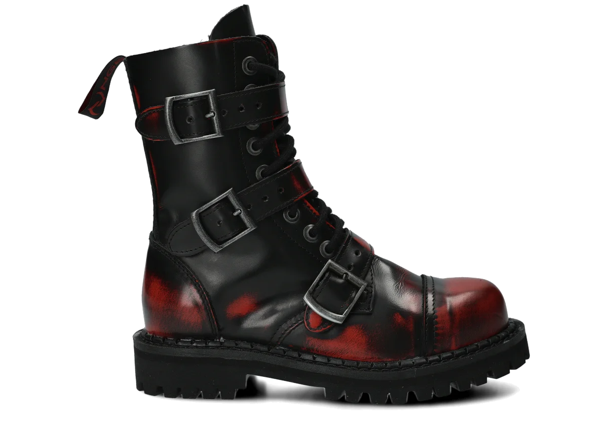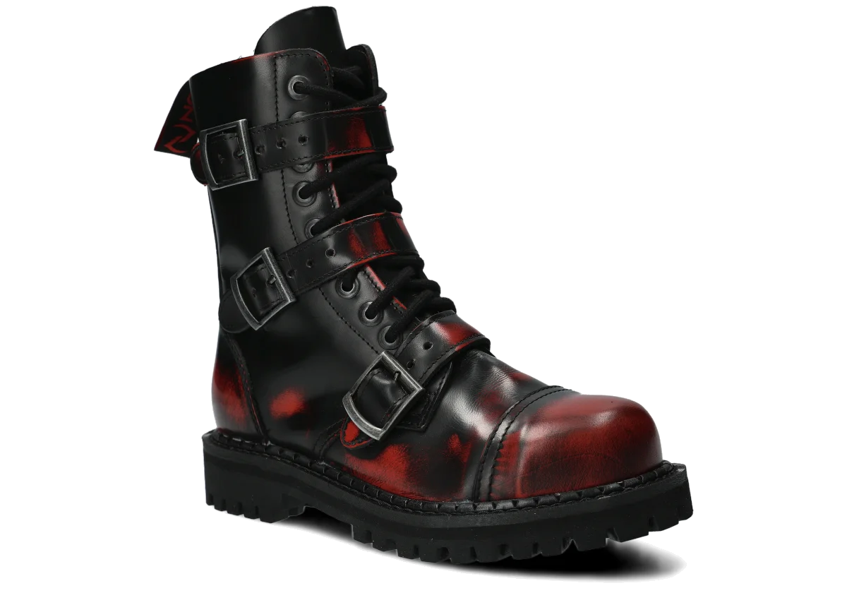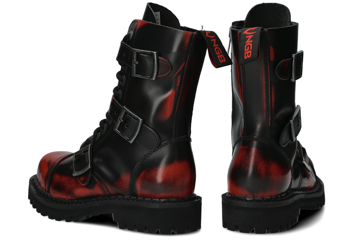 Glany NAGABA 523 červená-černý kabir kožené lícové s ocelovými špičkami jsou ideální volbou pro všechny, kteří chtějí spojit styl a bezpečnost.