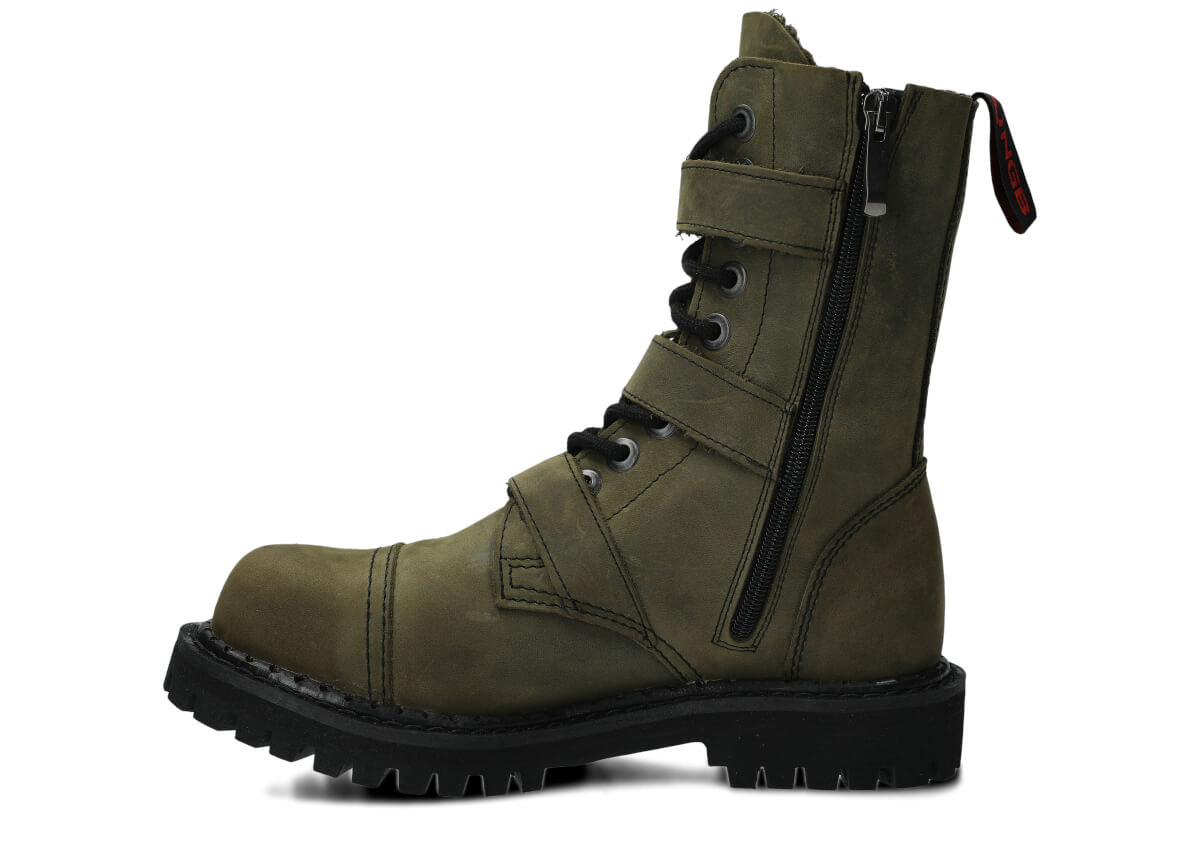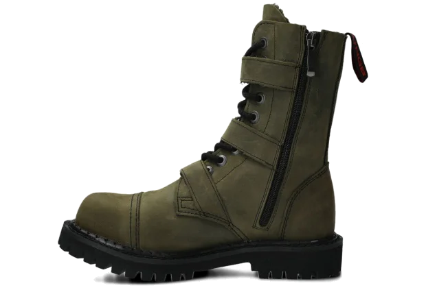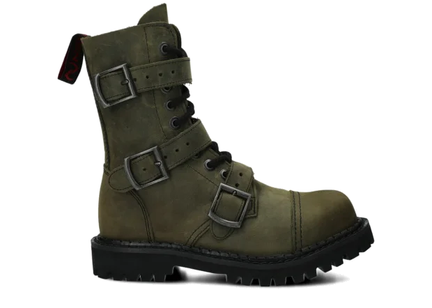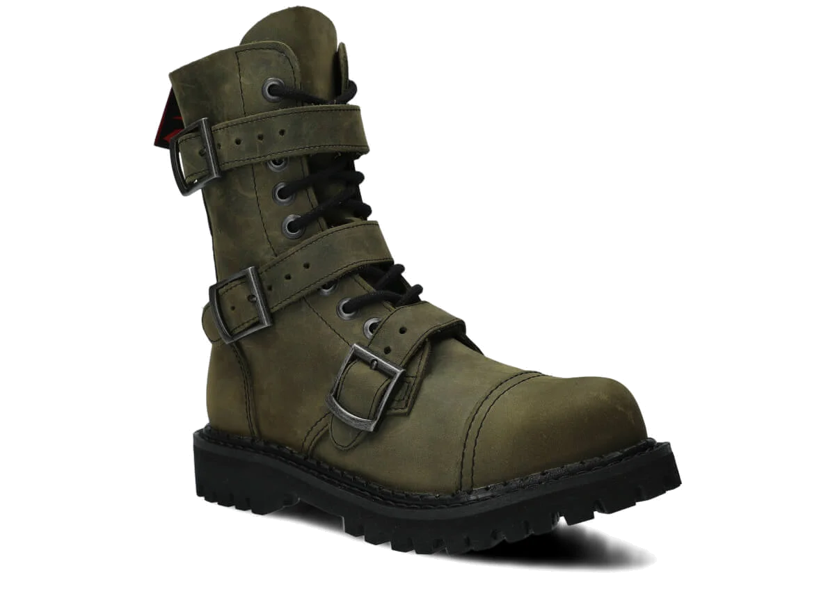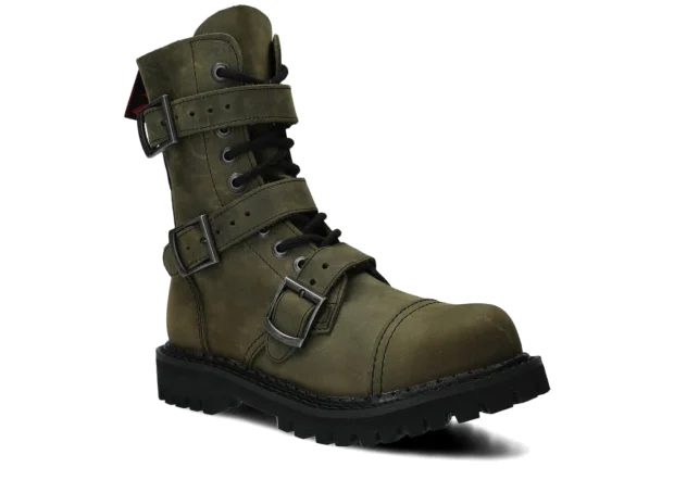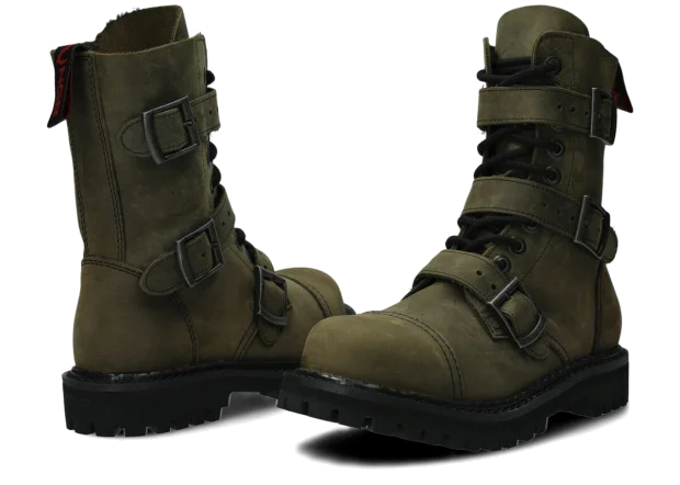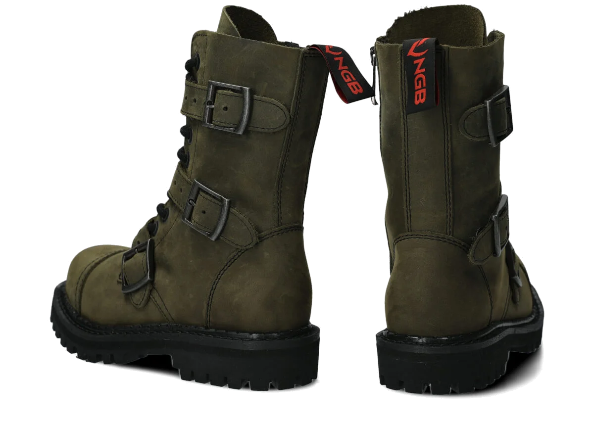 Glany NAGABA 523 olivová zelená crazy kožené s ocelovými špičkami jsou ideální volbou pro všechny, kteří chtějí spojit styl a bezpečnost.