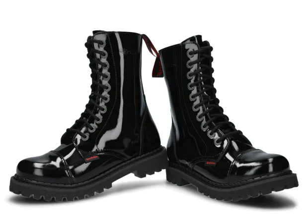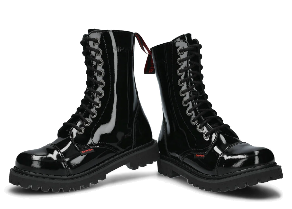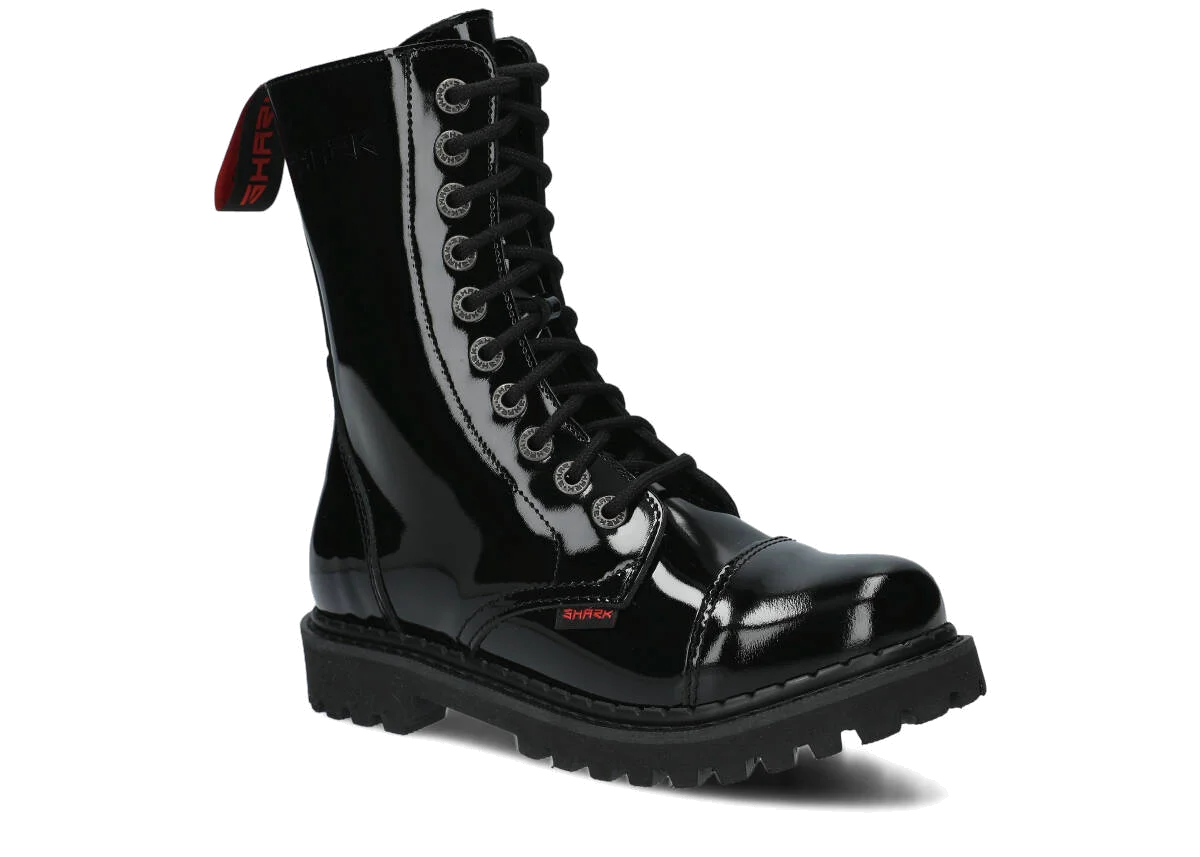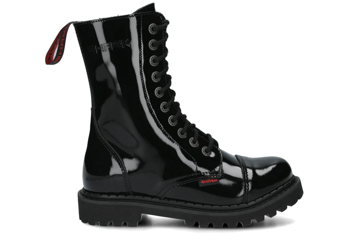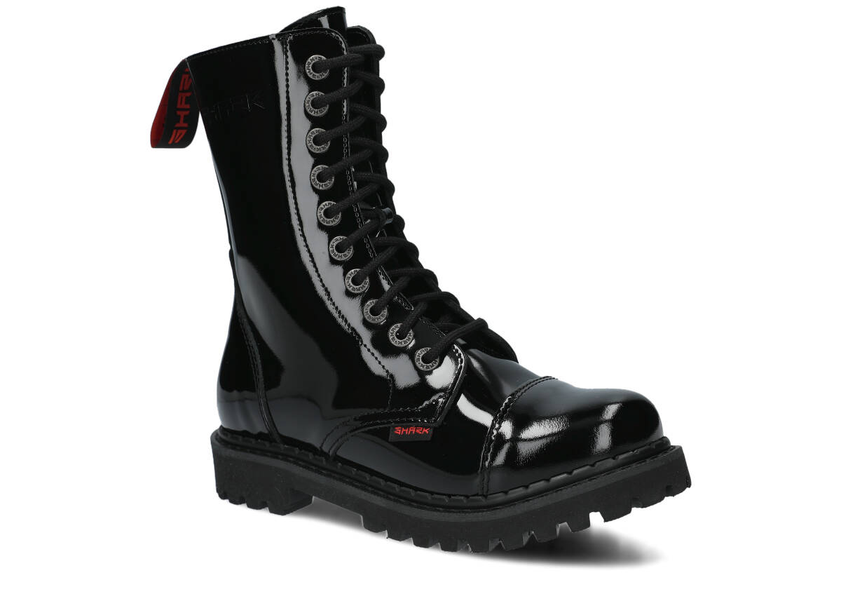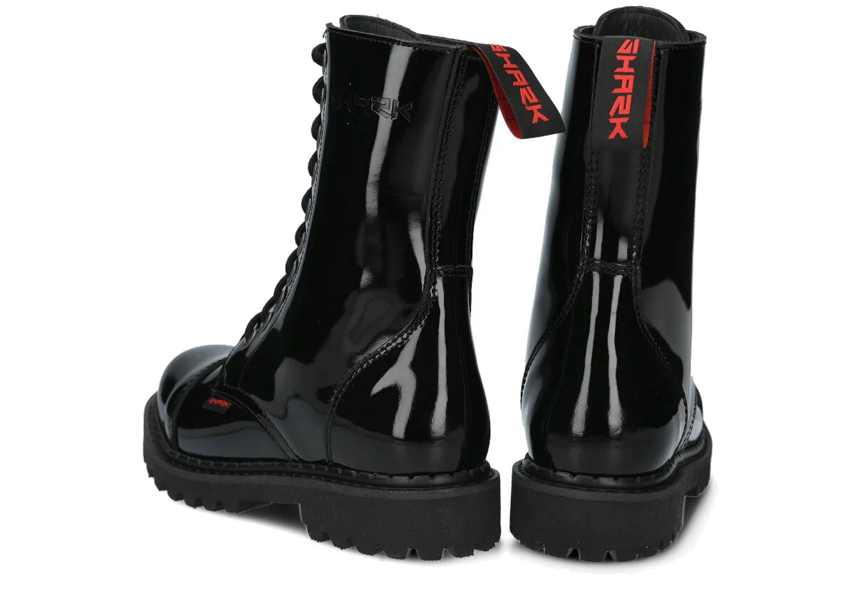 Vnitřní podšívka v botách zajišťuje další pohodlí. Všechno to znamená, že glády SHARK 10H černé lak kůže jsou skvělou volbou pro různé příležitosti - od koncertu, přes procházku, až po každodenní eleganci.