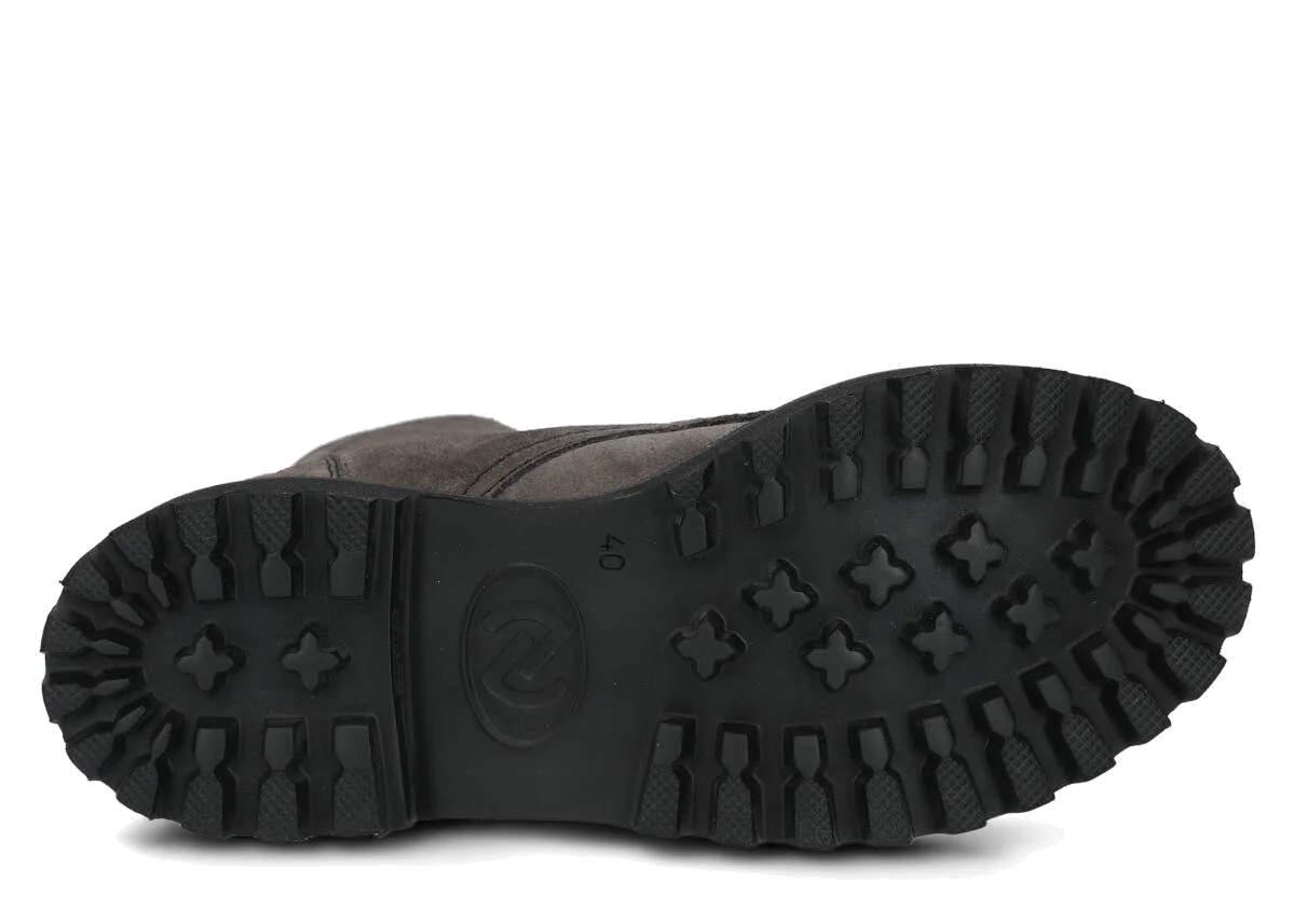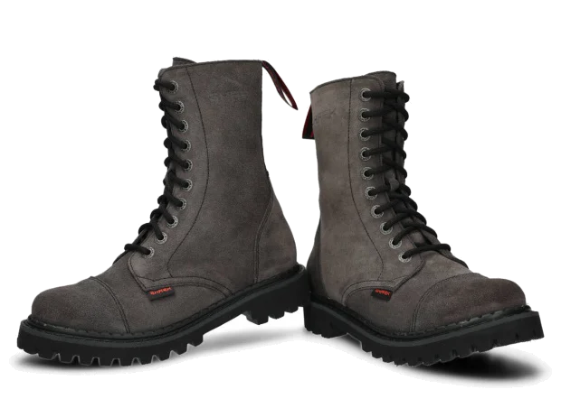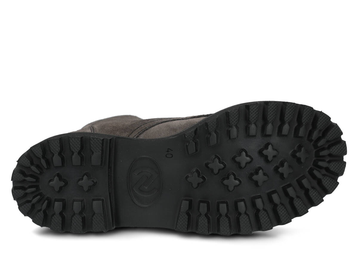 Tato obuv byla navržena a vyrobena v Polsku s dodržením nejvyšších standardů kvality. Lakovaná kůže typu velur v grafitová barvě, ze které je vyroben svršek, pochází z ověřených koželužen.