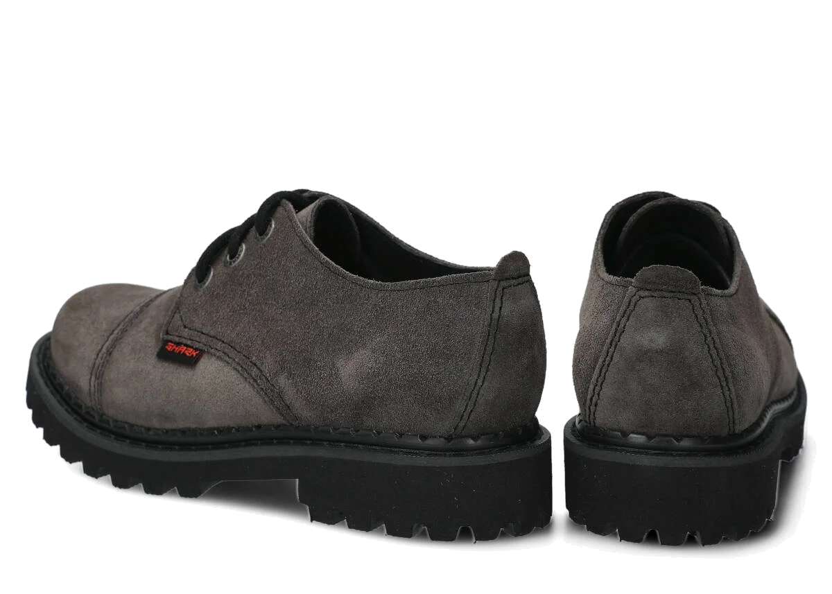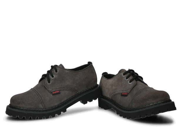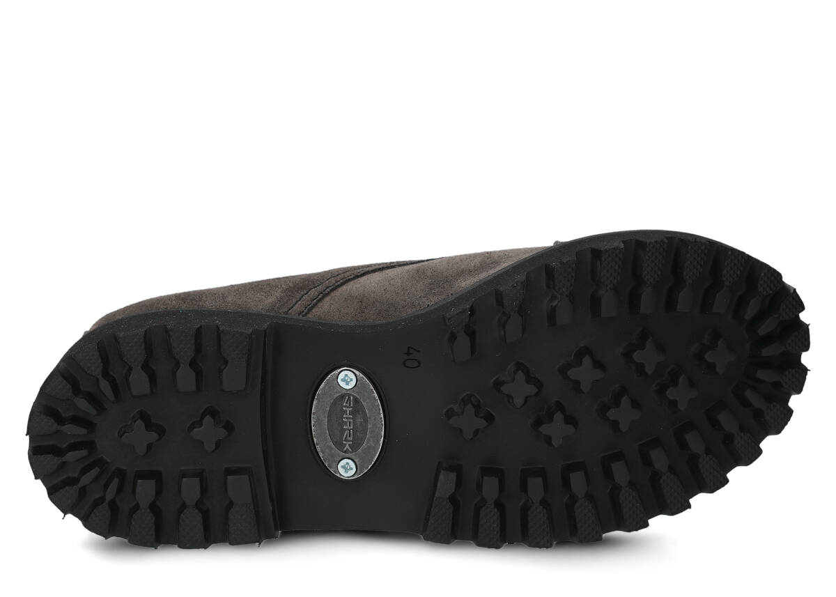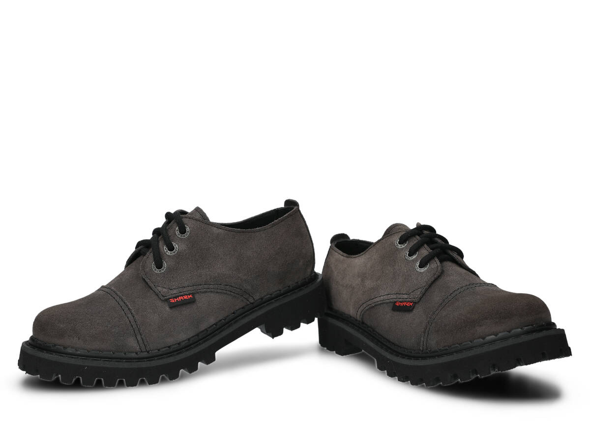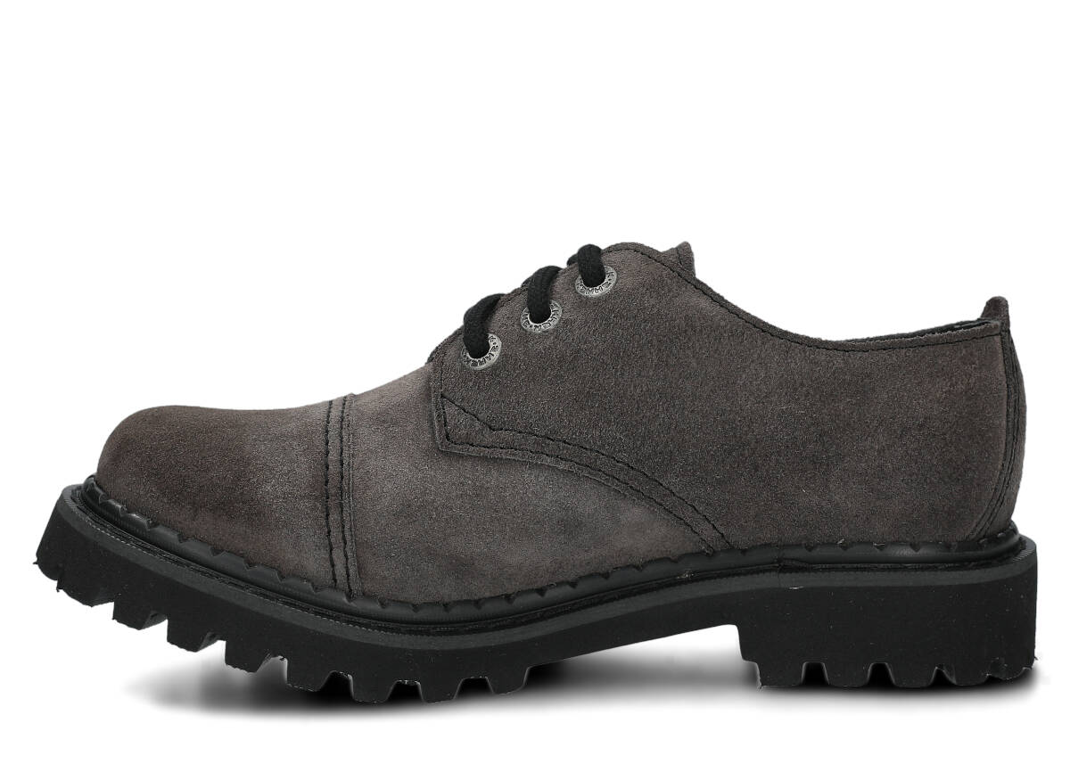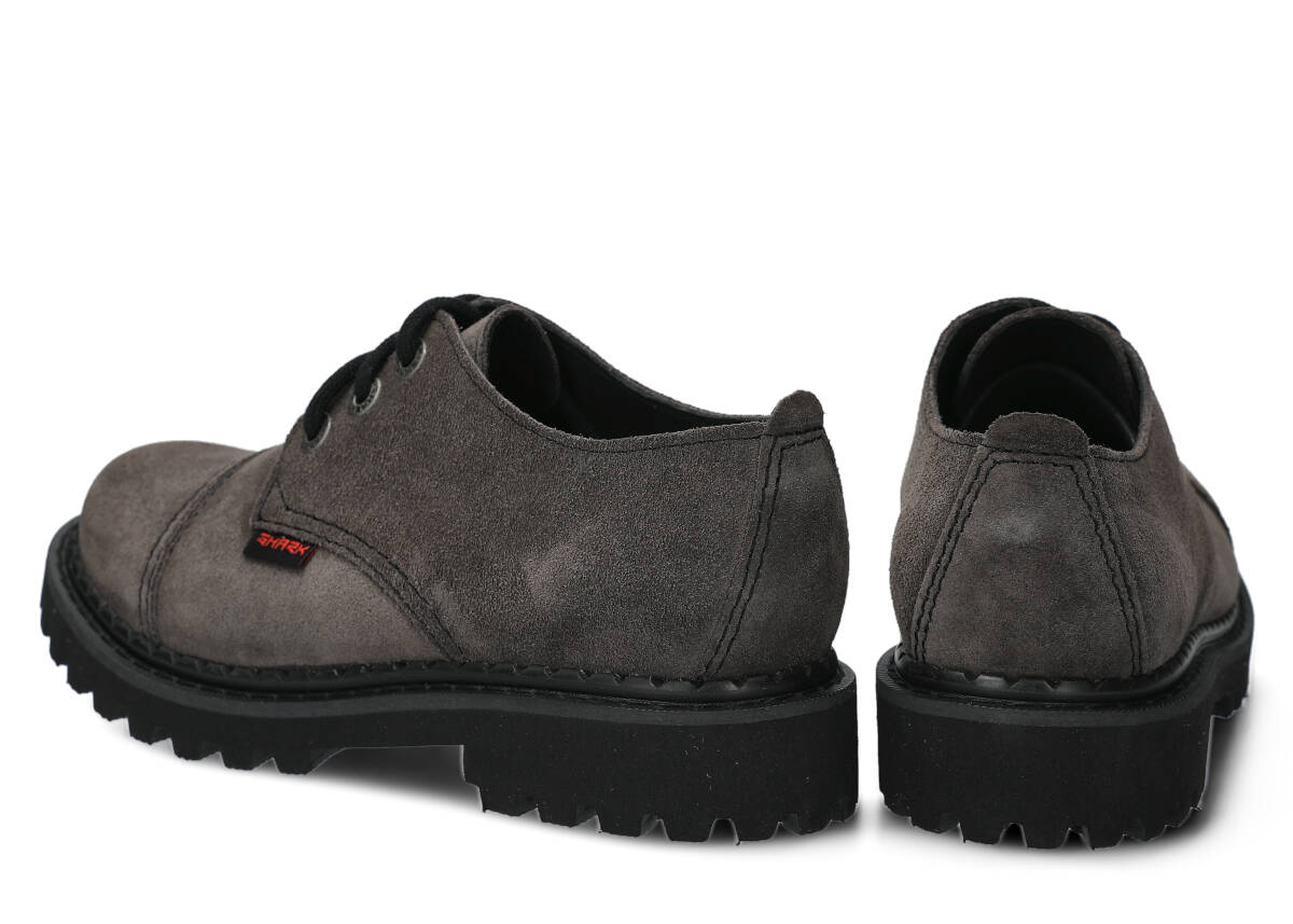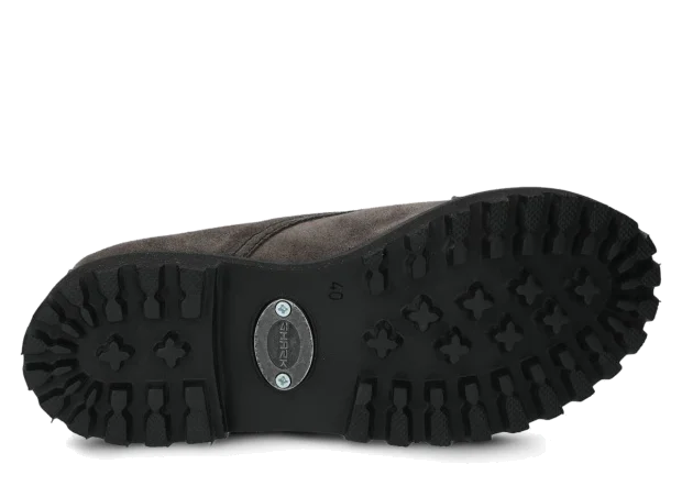 Tato obuv byla navržena a vyrobena v Polsku s dodržením nejvyšších standardů kvality. Lakovaná kůže typu velur v grafitová barvě, ze které je vyroben svršek, pochází z ověřených koželužen.