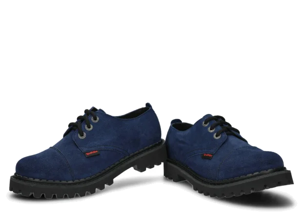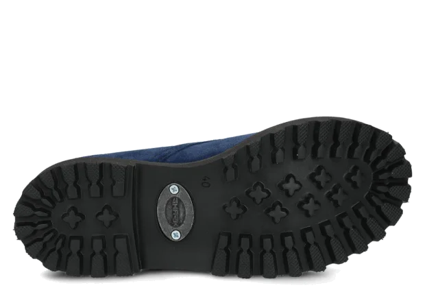 Tato obuv byla navržena a vyrobena v Polsku s dodržením nejvyšších standardů kvality. Lakovaná kůže typu bosman v tmavě modrá barvě, ze které je vyroben svršek, pochází z ověřených koželužen.