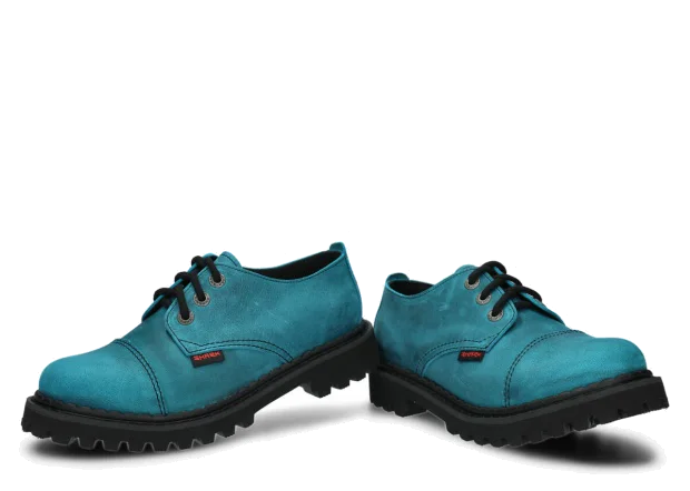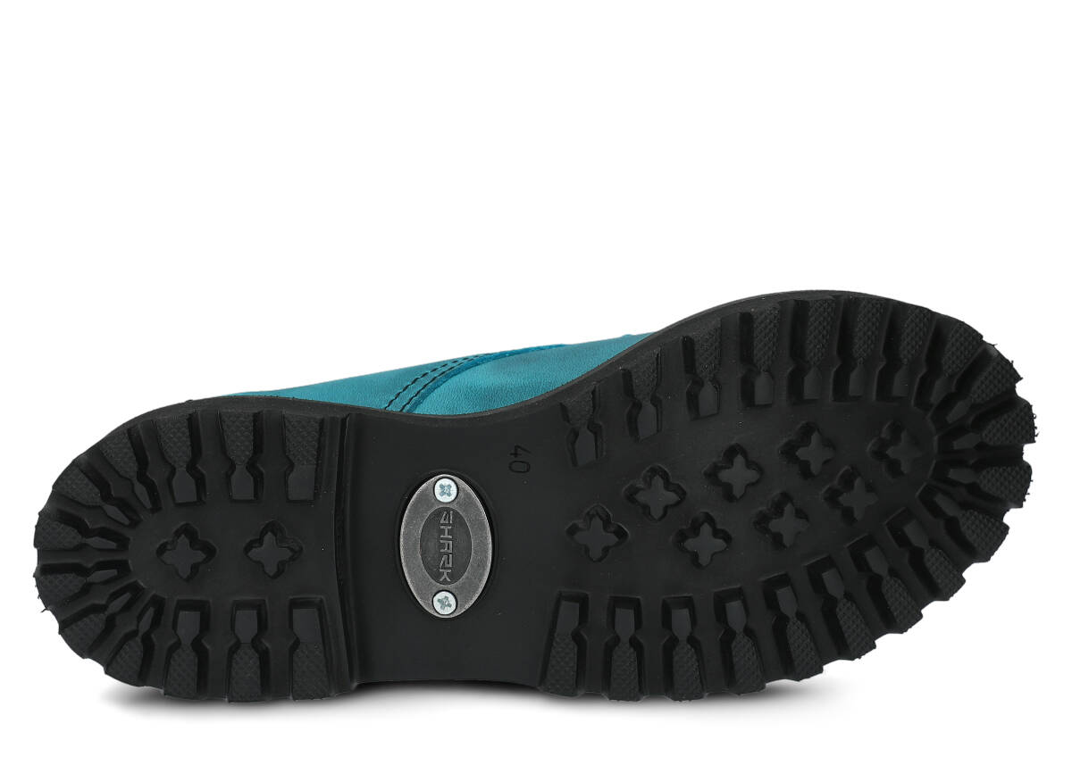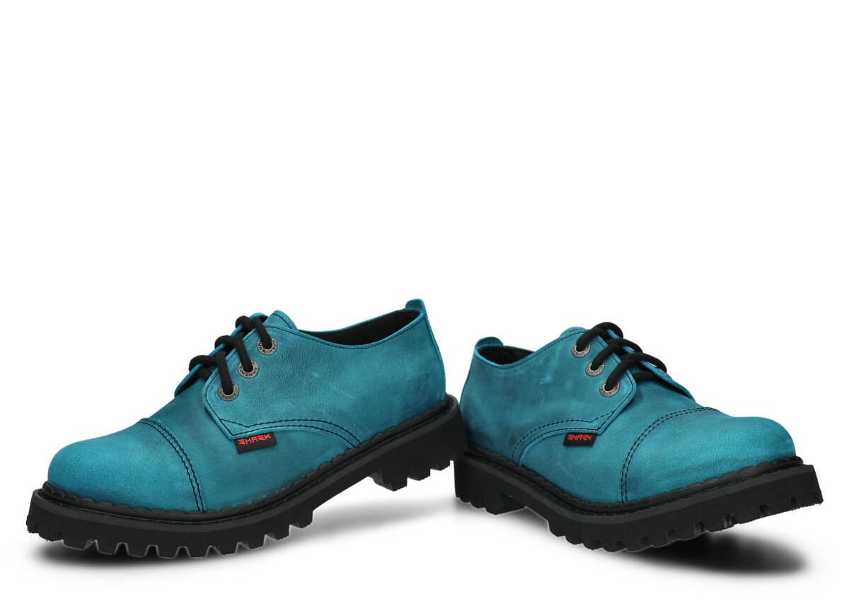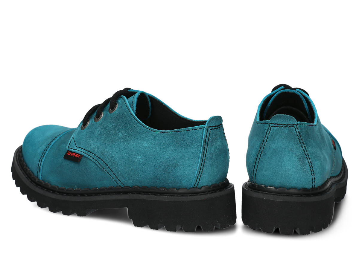 Tato obuv byla navržena a vyrobena v Polsku s dodržením nejvyšších standardů kvality. Lakovaná kůže typu crazy v tyrkysová barvě, ze které je vyroben svršek, pochází z ověřených koželužen.