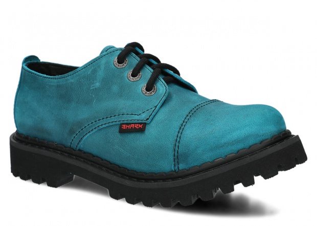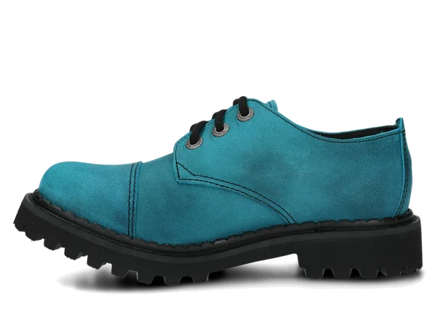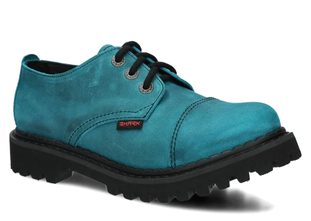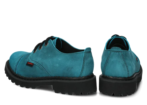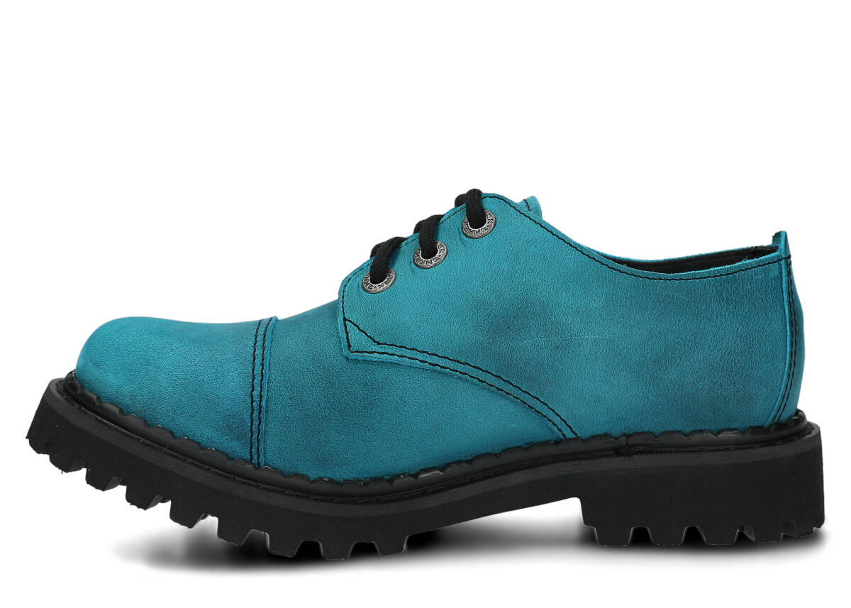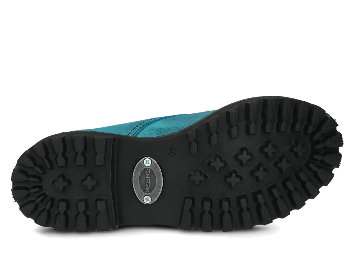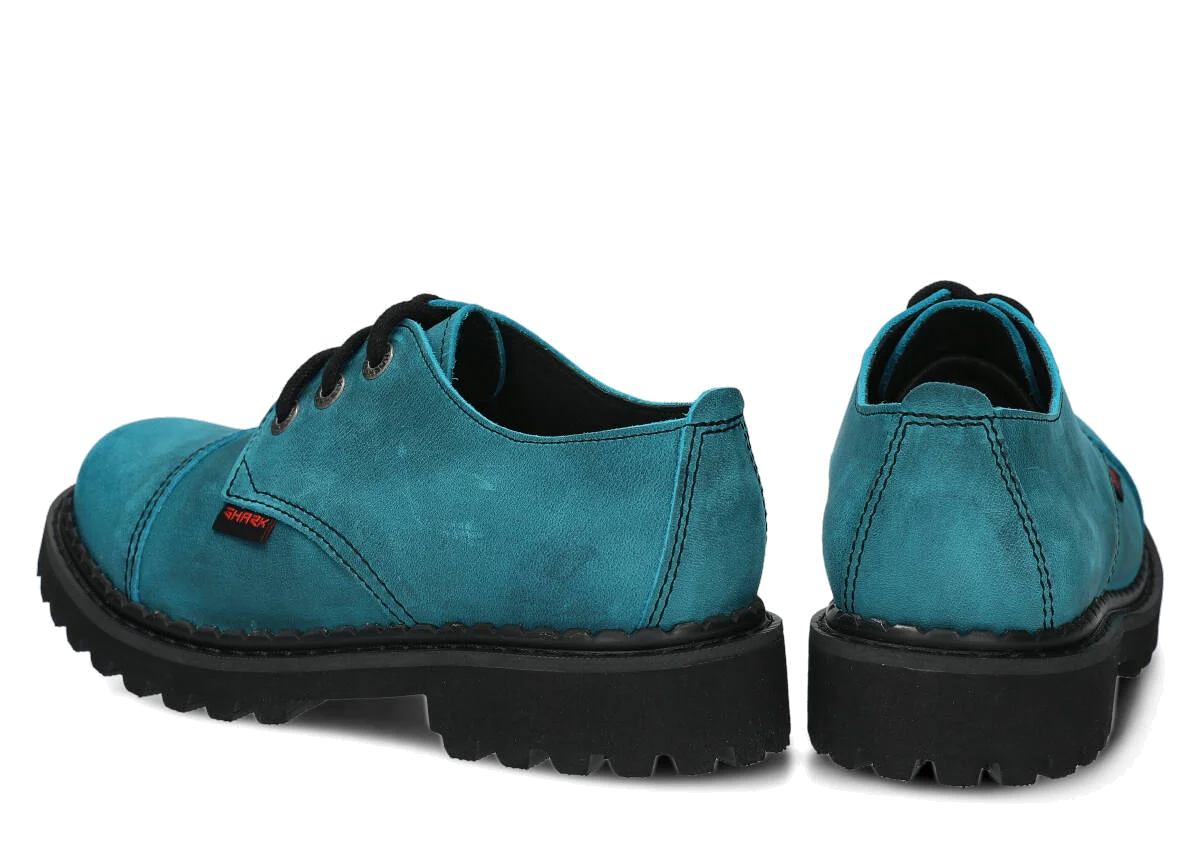 Tato obuv byla navržena a vyrobena v Polsku s dodržením nejvyšších standardů kvality. Lakovaná kůže typu crazy v tyrkysová barvě, ze které je vyroben svršek, pochází z ověřených koželužen.
