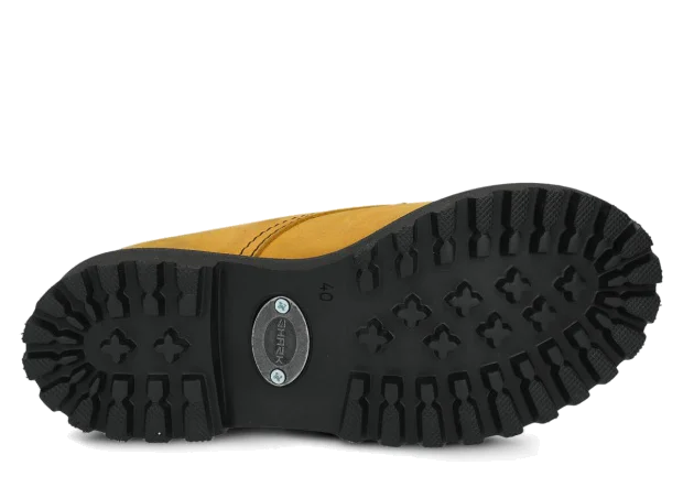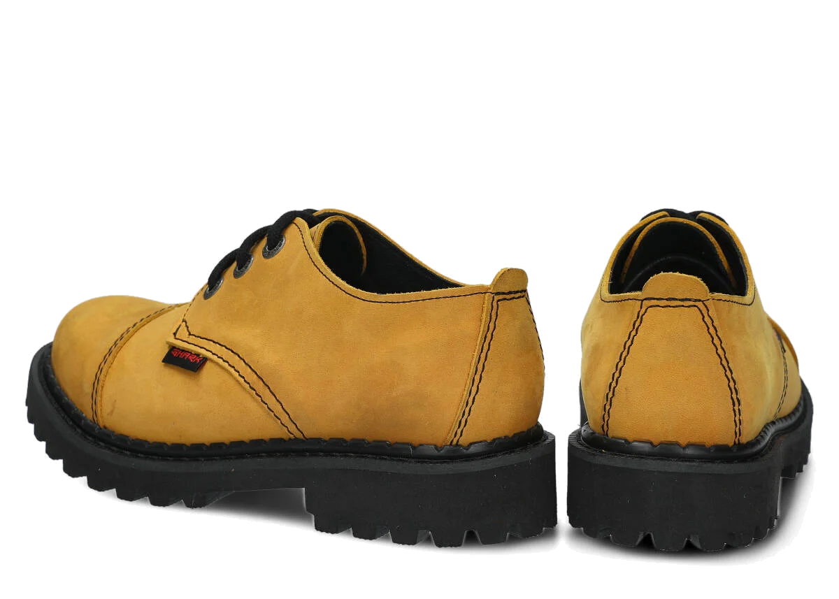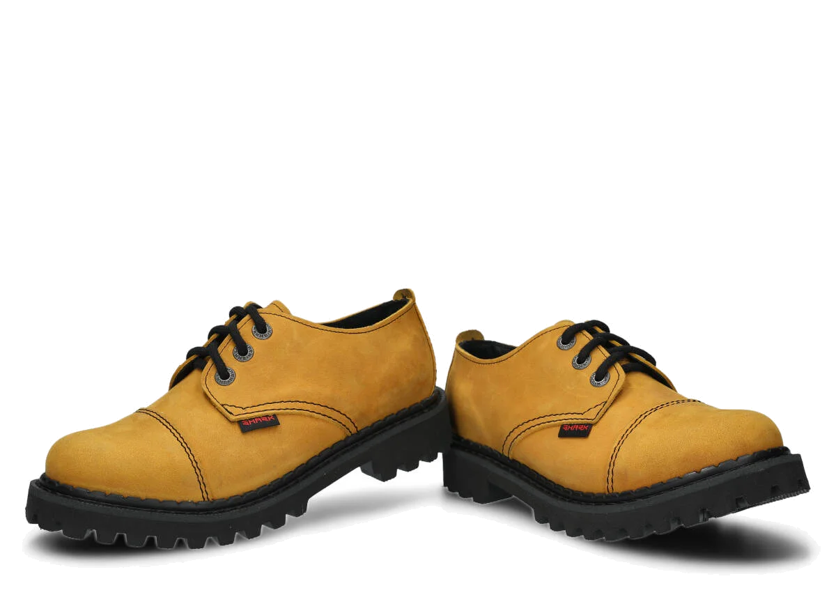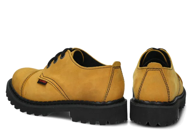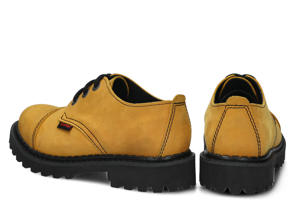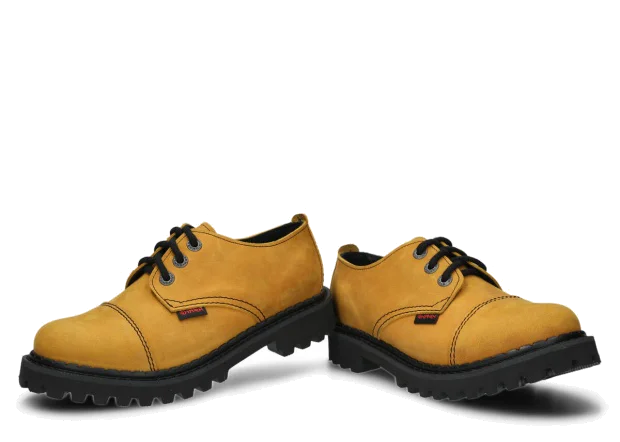 Tato obuv byla navržena a vyrobena v Polsku s dodržením nejvyšších standardů kvality. Lakovaná kůže typu crazy v žlutá barvě, ze které je vyroben svršek, pochází z ověřených koželužen.