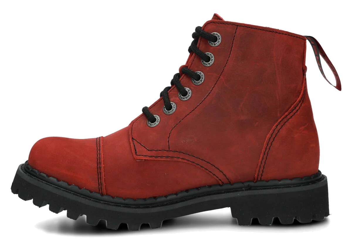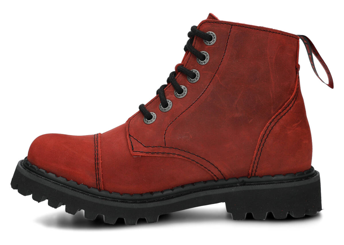 Tato obuv byla navržena a vyrobena v Polsku s dodržením nejvyšších standardů kvality. Lakovaná kůže typu crazy v červená barvě, ze které je vyroben svršek, pochází z ověřených koželužen.