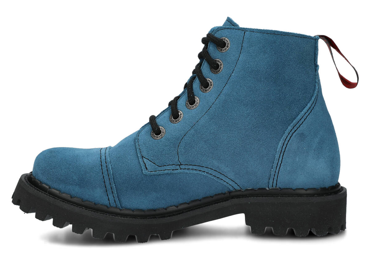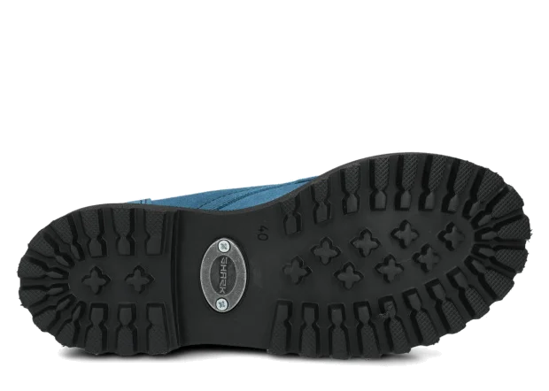 Tato obuv byla navržena a vyrobena v Polsku s dodržením nejvyšších standardů kvality. Lakovaná kůže typu velur v jeans barvě, ze které je vyroben svršek, pochází z ověřených koželužen.