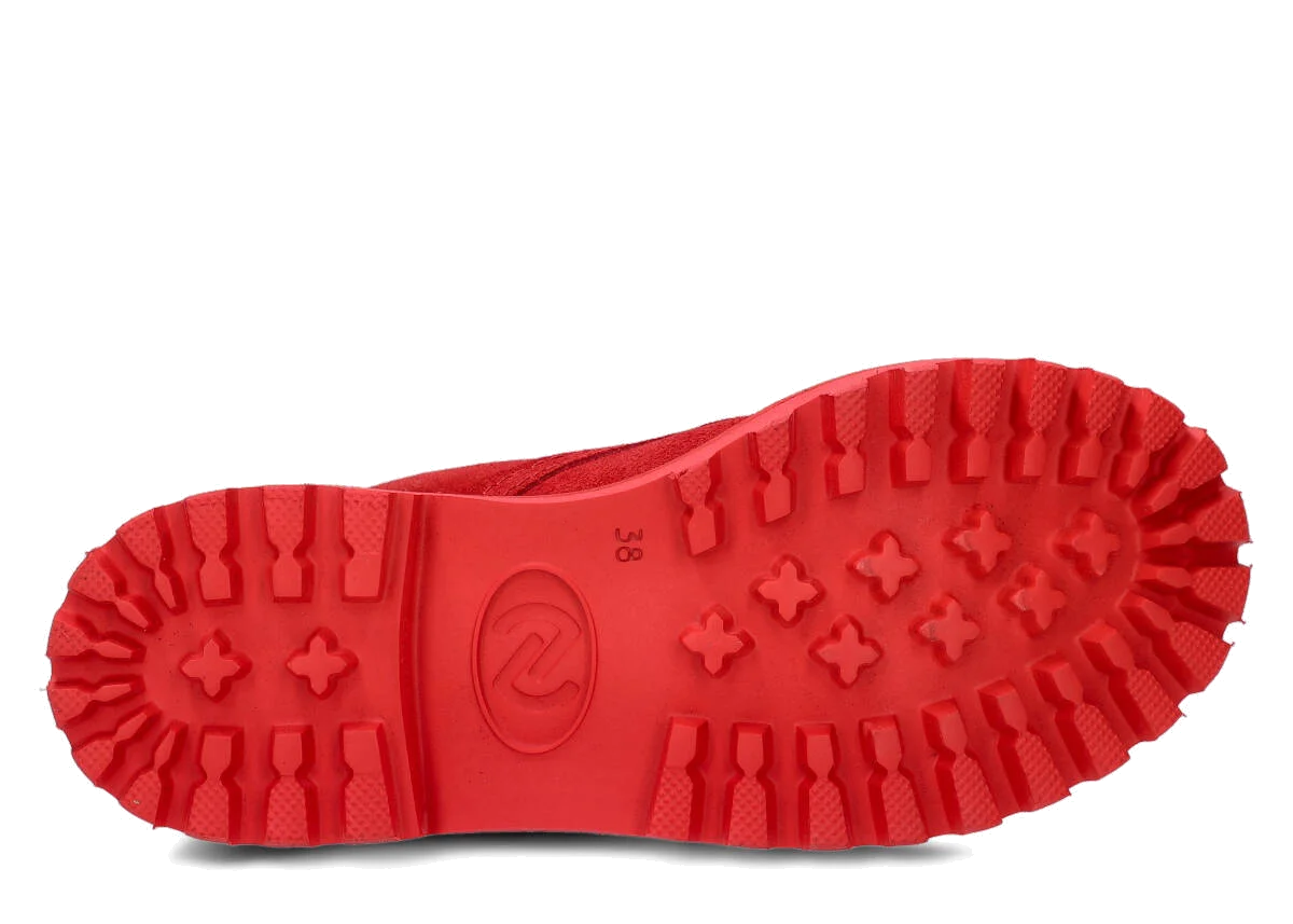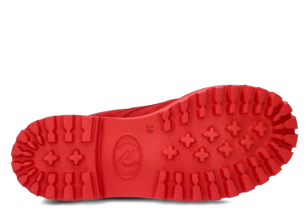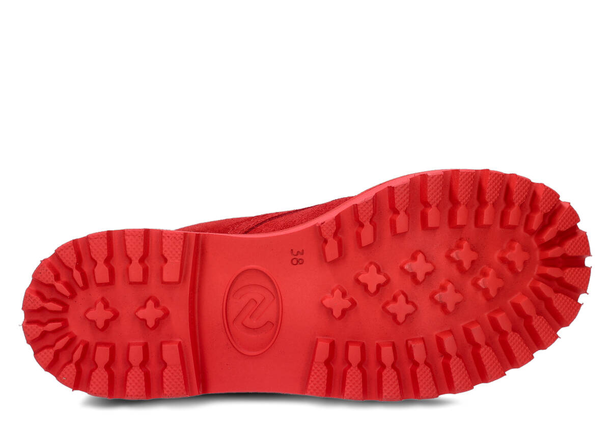 Obuv byla navržena a vyrobena v Polsku, s dodržením nejvyšších standardů kvality. červená kůže typu velur , z které je vyroben svršek, pochází z ověřených koželužen.