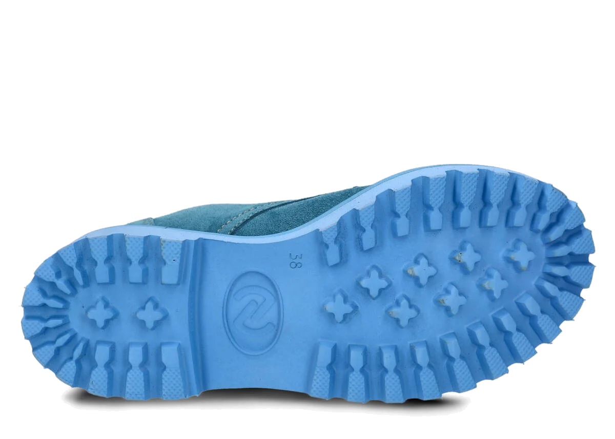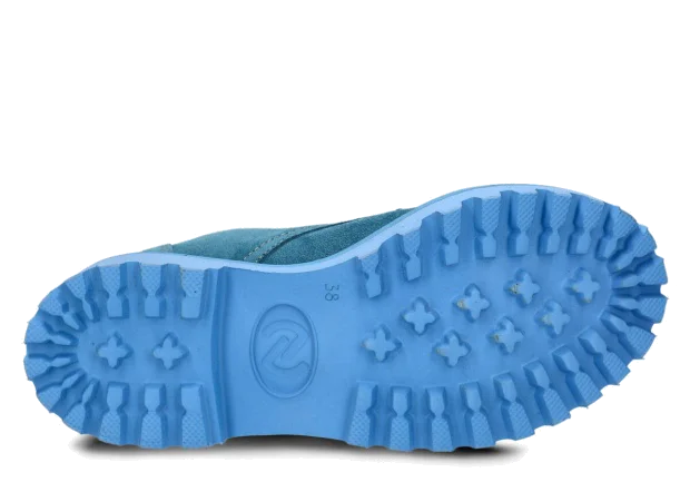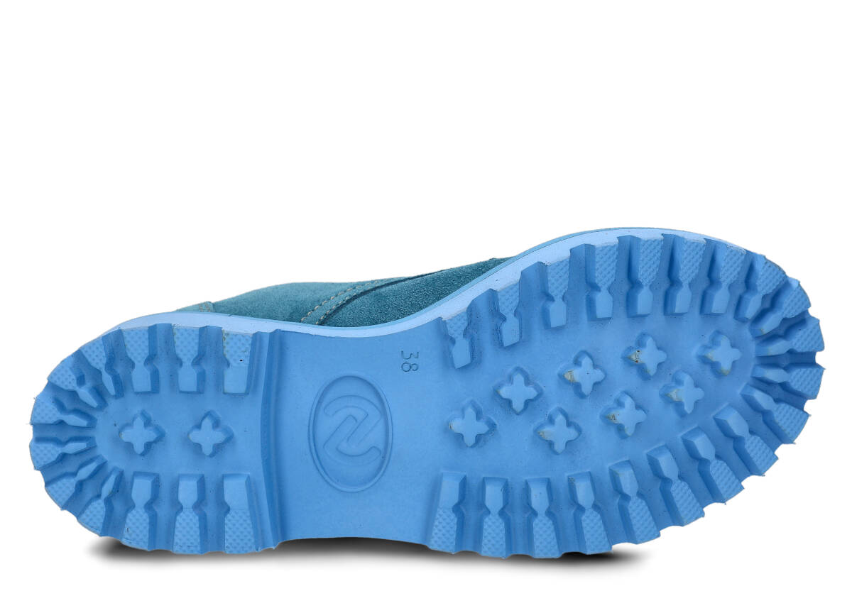 Tato obuv byla navržena a vyrobena v Polsku s dodržením nejvyšších standardů kvality. Lakovaná kůže typu velur v jeans barvě, ze které je vyroben svršek, pochází z ověřených koželužen.