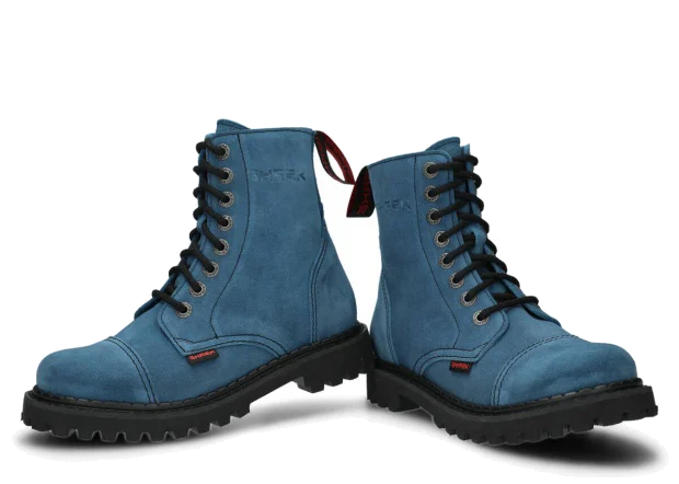 Tato obuv byla navržena a vyrobena v Polsku s dodržením nejvyšších standardů kvality. Lakovaná kůže typu velur v jeans barvě, ze které je vyroben svršek, pochází z ověřených koželužen.