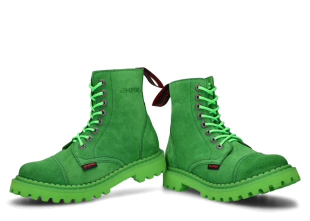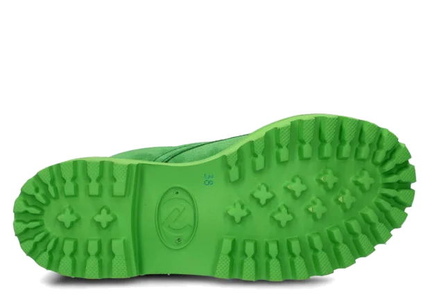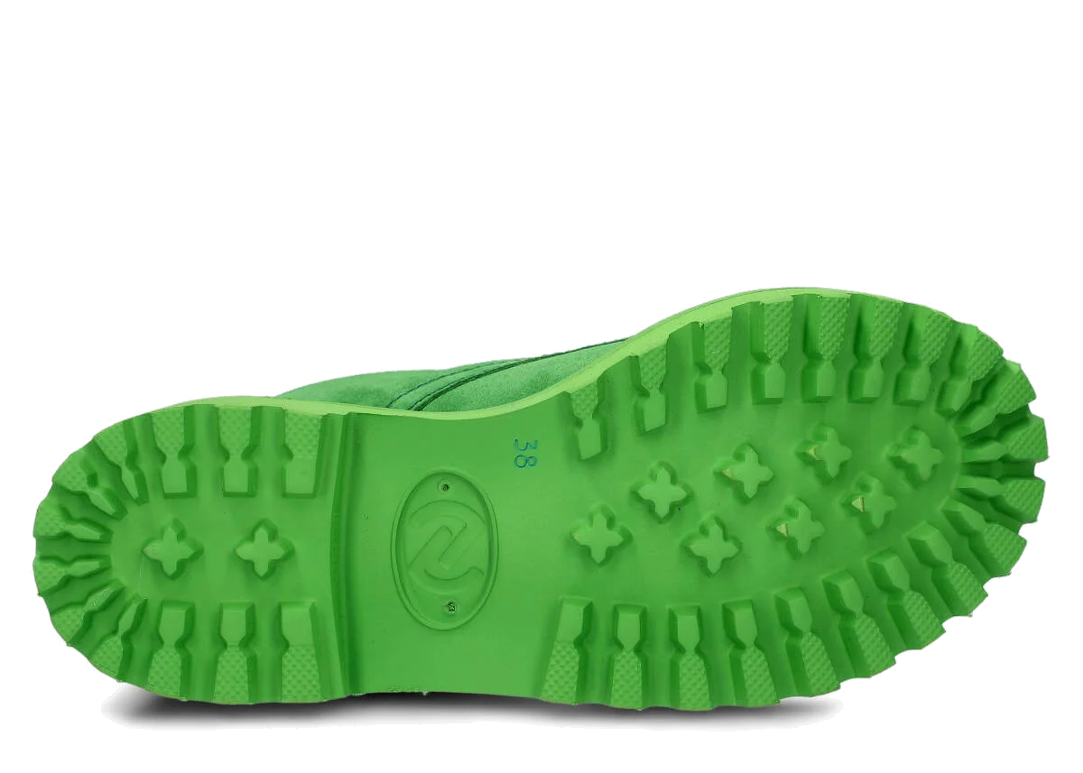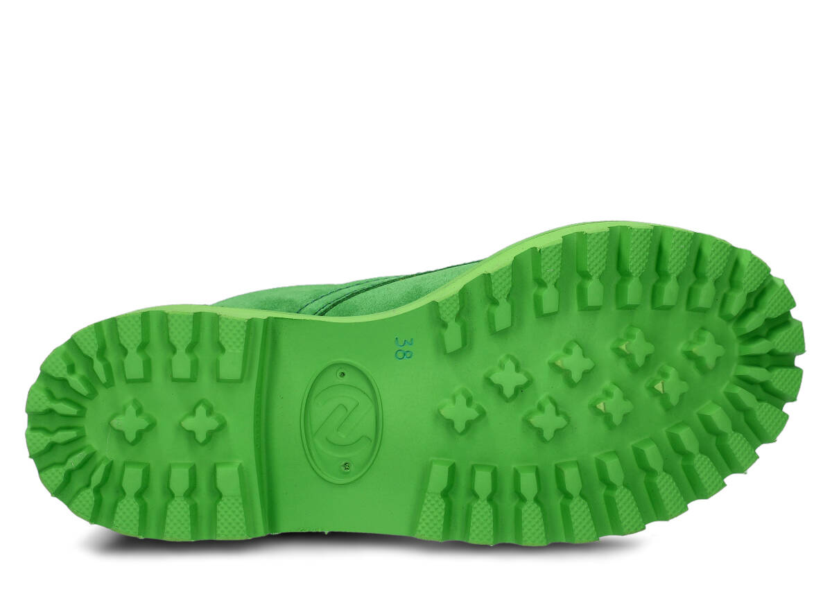 Tato obuv byla navržena a vyrobena v Polsku s dodržením nejvyšších standardů kvality. Lakovaná kůže typu velur v zelená tráva barvě, ze které je vyroben svršek, pochází z ověřených koželužen.