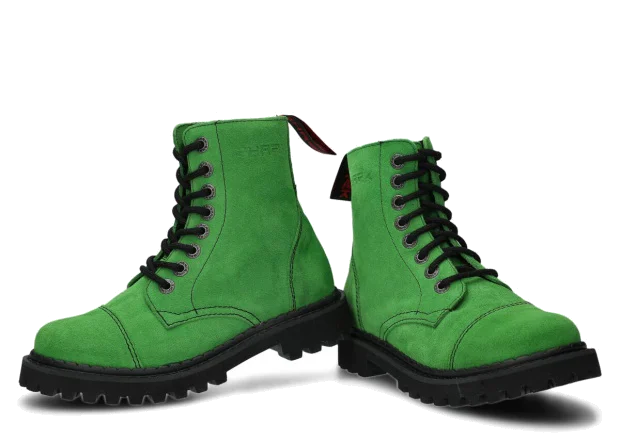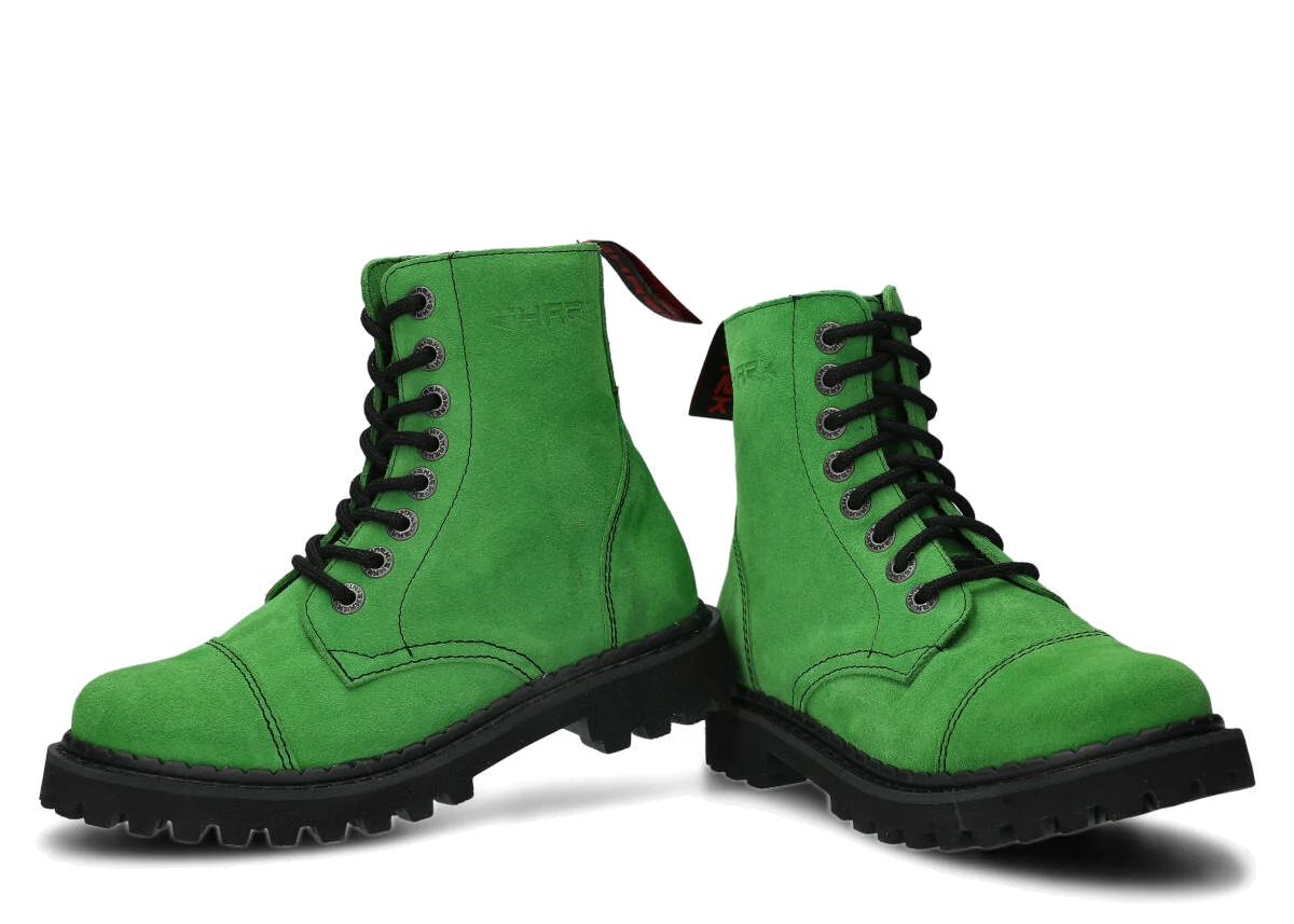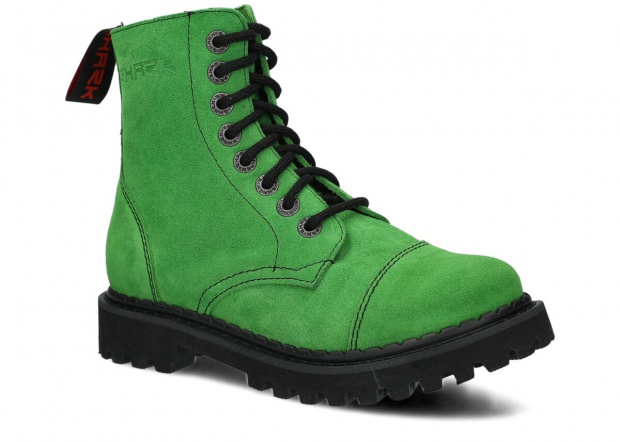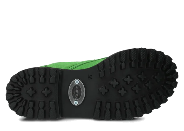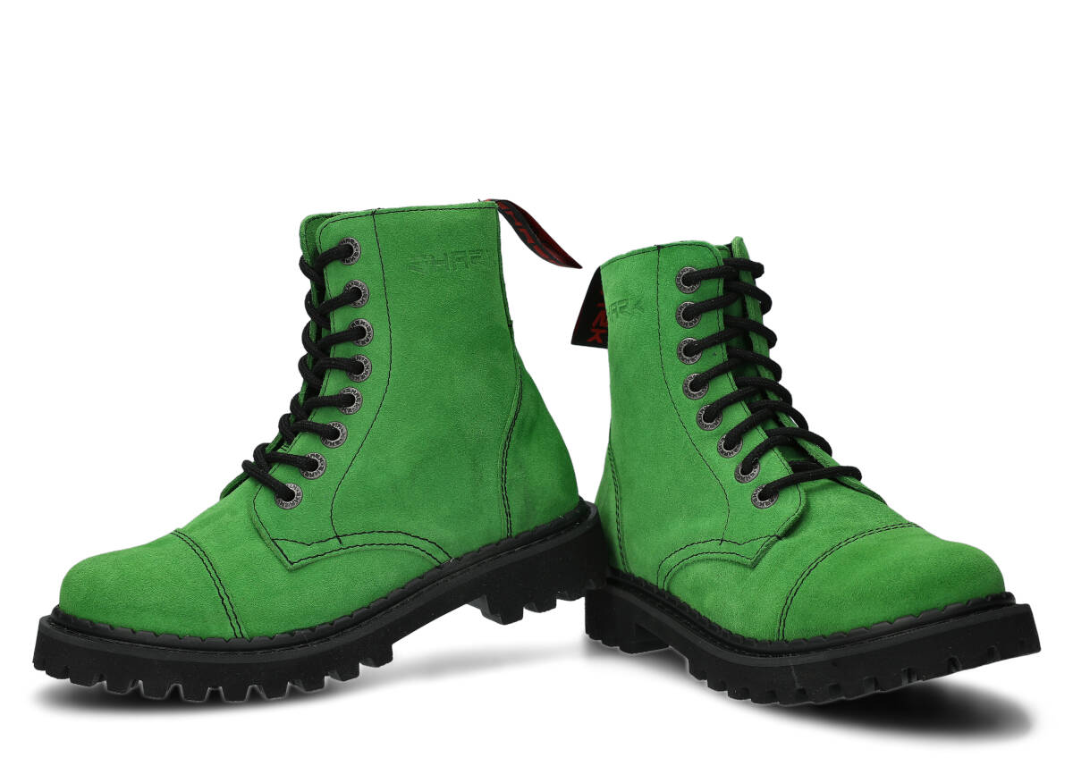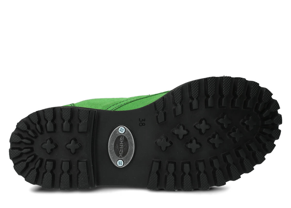 Tato obuv byla navržena a vyrobena v Polsku s dodržením nejvyšších standardů kvality. Lakovaná kůže typu velur v zelená tráva barvě, ze které je vyroben svršek, pochází z ověřených koželužen.