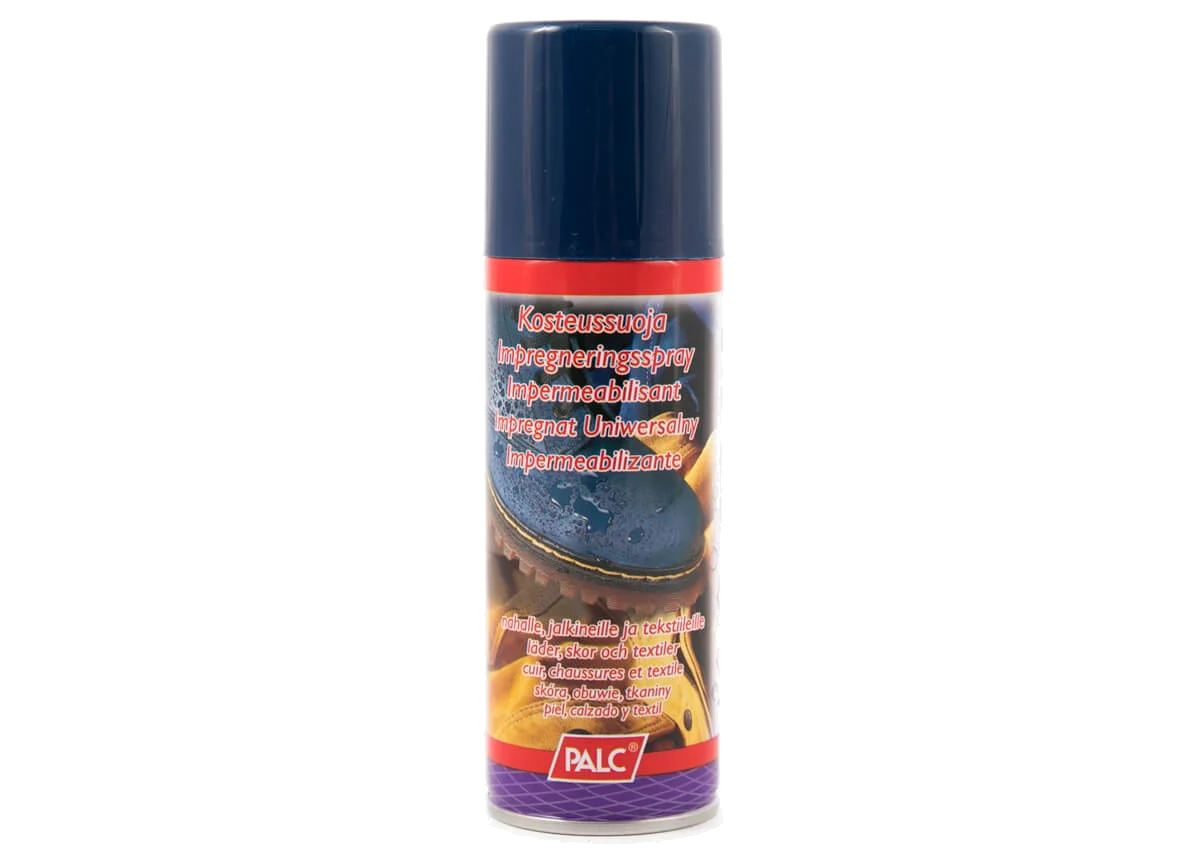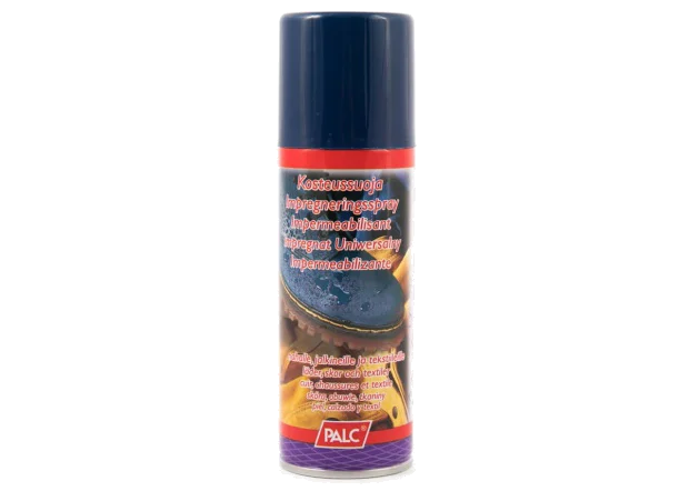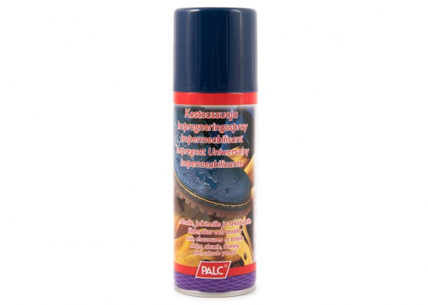 Impregnační prostředek na všechny typy obuvi. Impregnace od španělské společnosti PALC, specializující se na výrobu výrobků pro péči o obuv - vysoce kvalitní produkt za nízkou cenu. Bezbarvá kompletní impregnace ve spreji. Vhodný na všechny druhy kůže (kromě umělé a lakované kůže), textil a tkaniny, sportovní koženou obuv, kabelky, batohy, bundy. Poskytuje účinnou ochranu proti vlhkosti a nečistotám. Speciální složení výrobku způsobuje, že po použití je prodyšný a zároveň chrání před vodou a nečistotami.