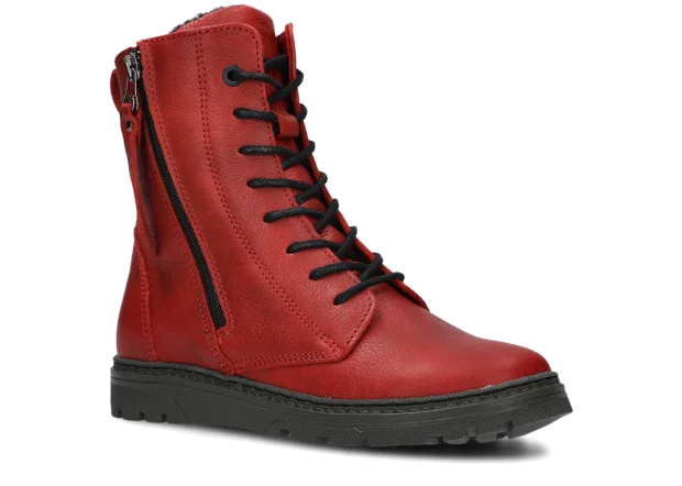 Ideální volbou pro podzimní nebo zimní období jsou dámské šněrovací boty ve červená barvě. Je to obuv model 099 vyrobená z mrak kůže, která se vyznačuje moderním stylem, kterou si zamilují lidé všech věkových skupin.