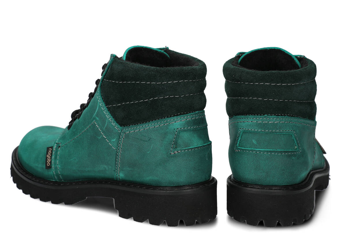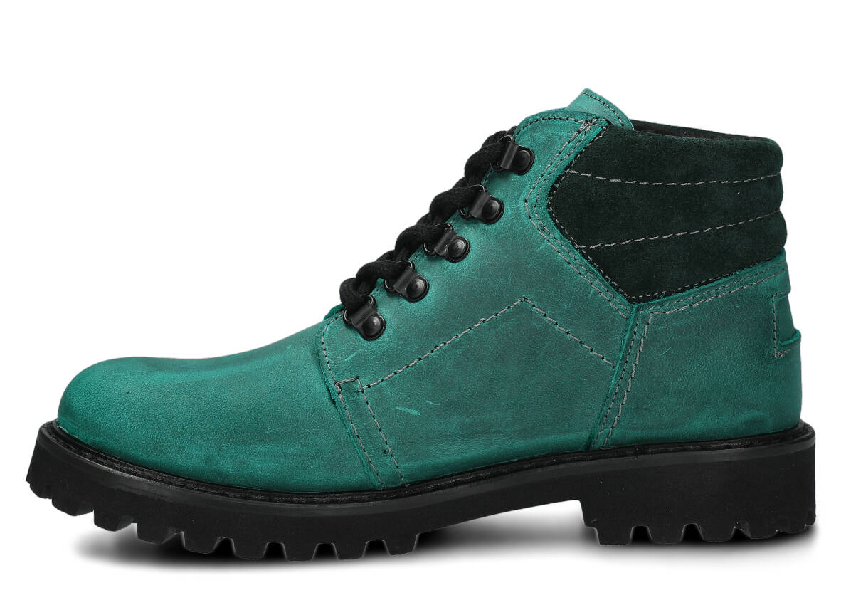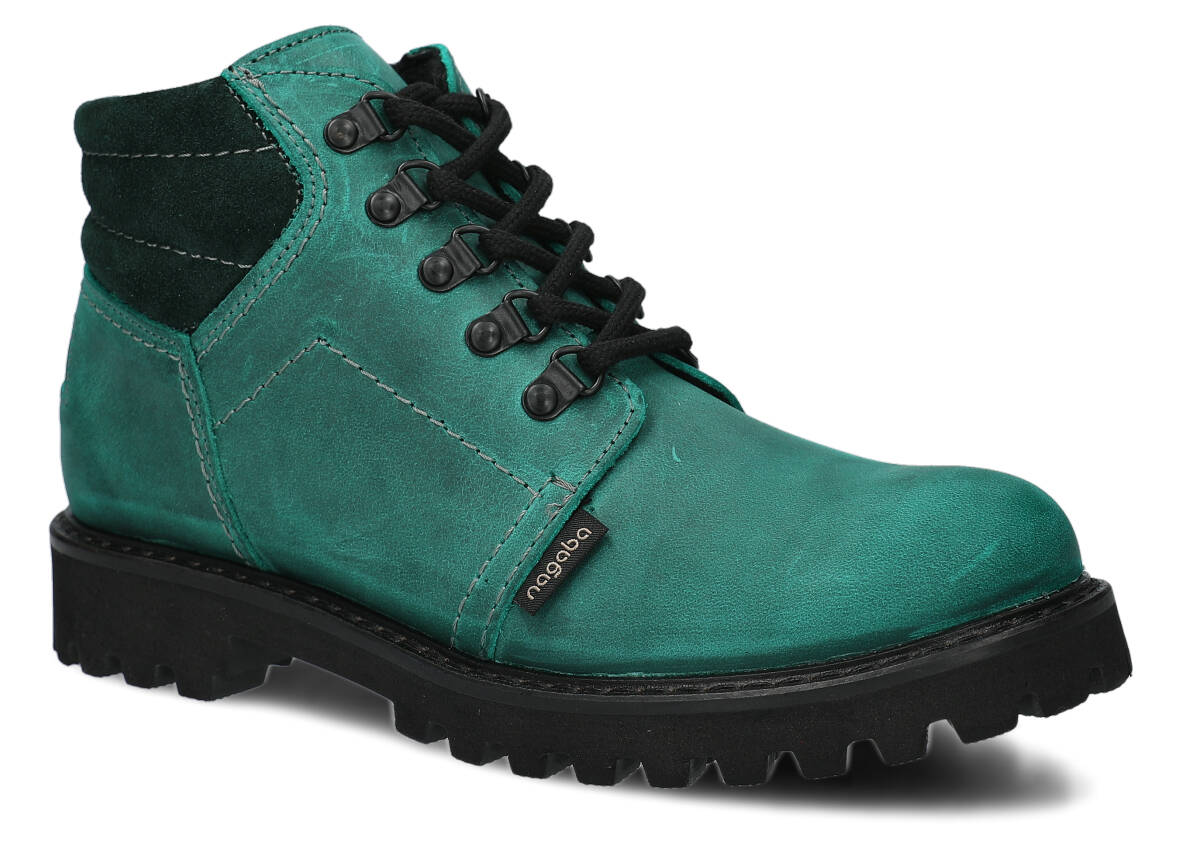 Kotníkové traperky - NAGABA 1121 smaragdová crazy kožené