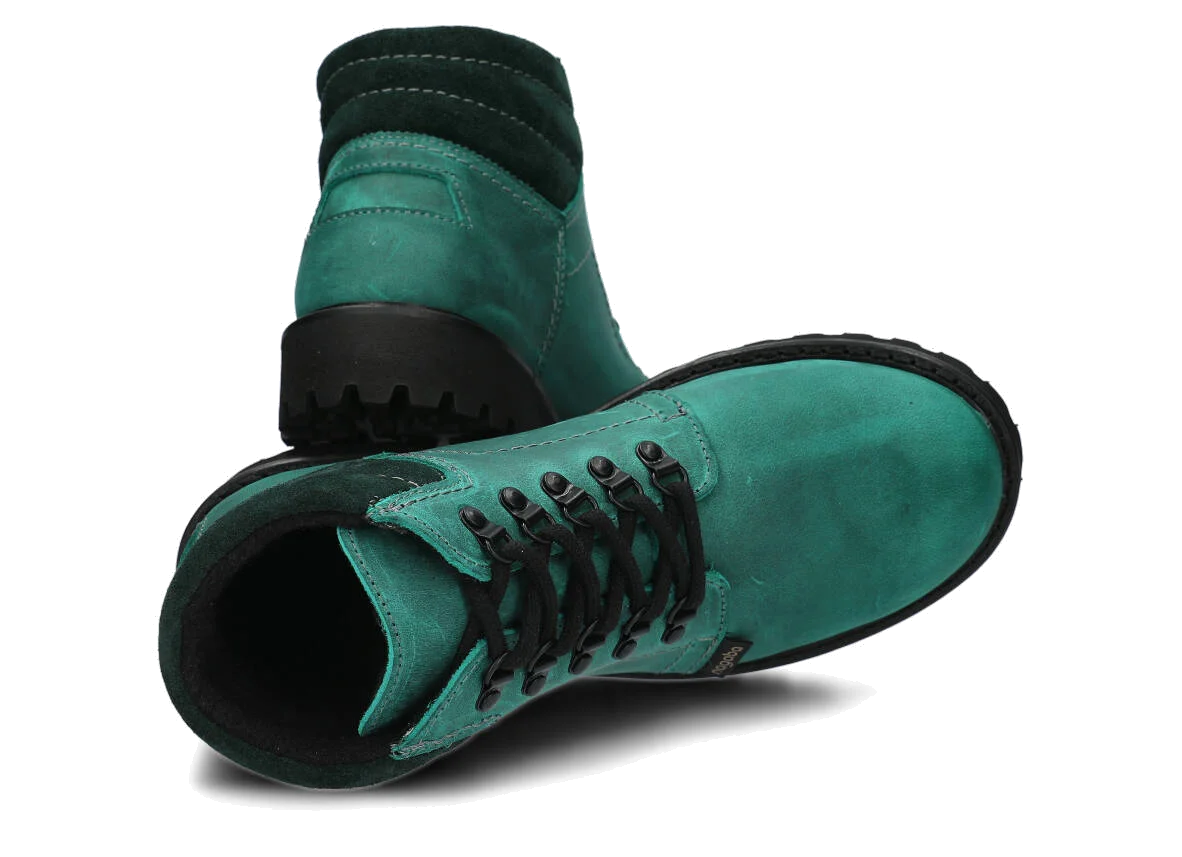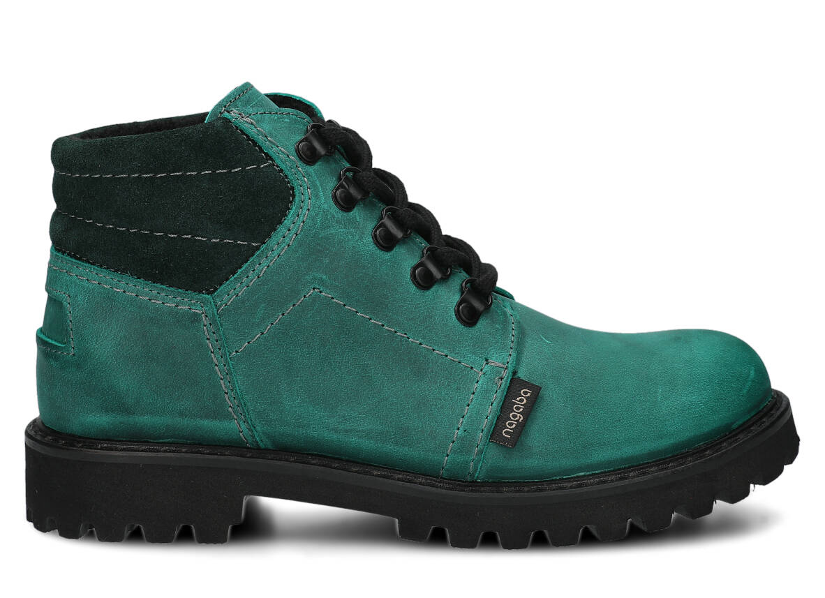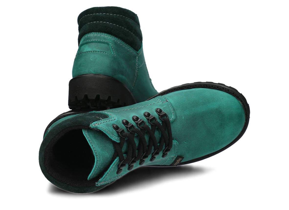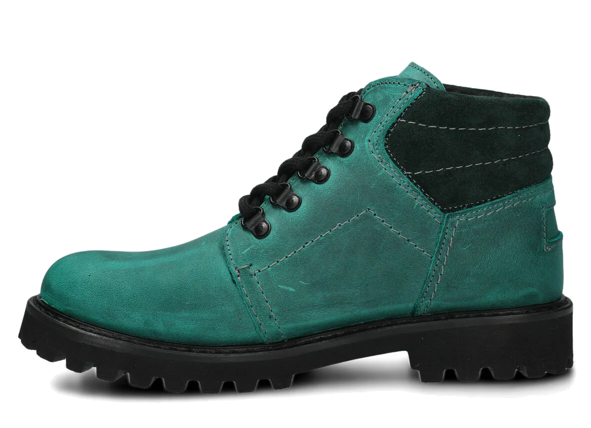 Kotníkové traperky - NAGABA 1121 smaragdová crazy kožené