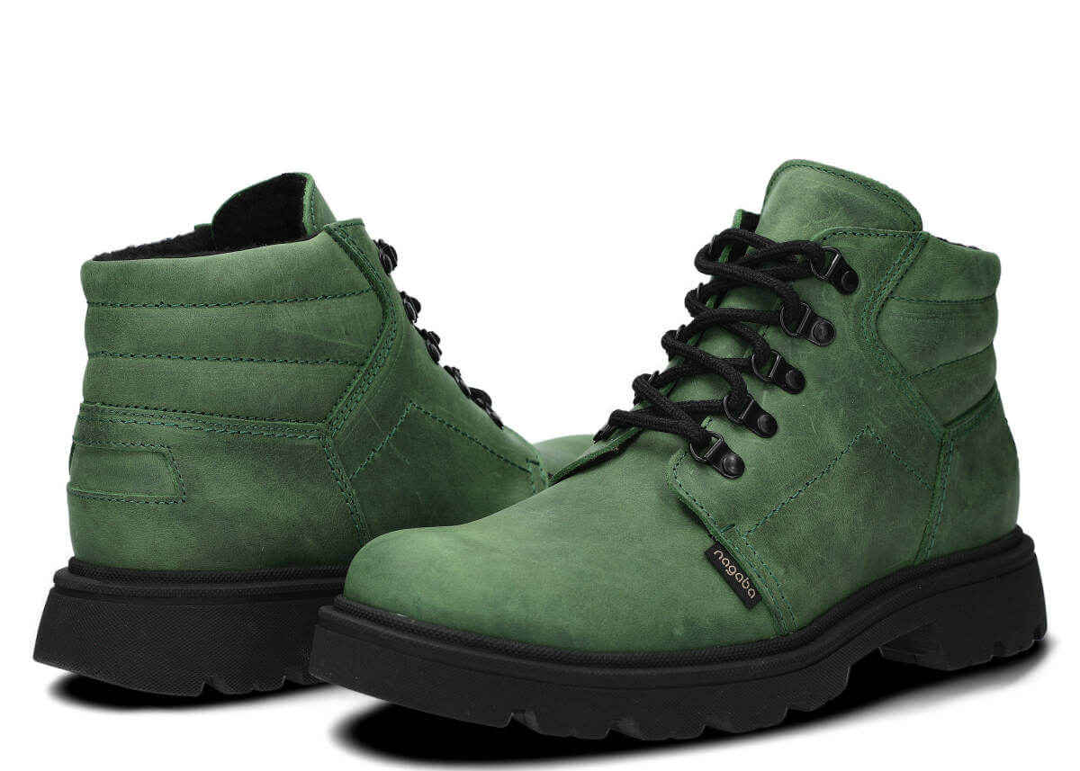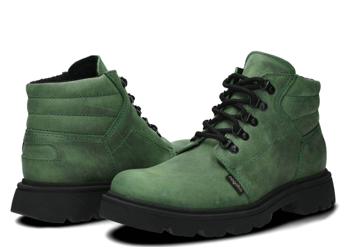 Kotníkové traperky NAGABA 1122 zelená crazy kožené