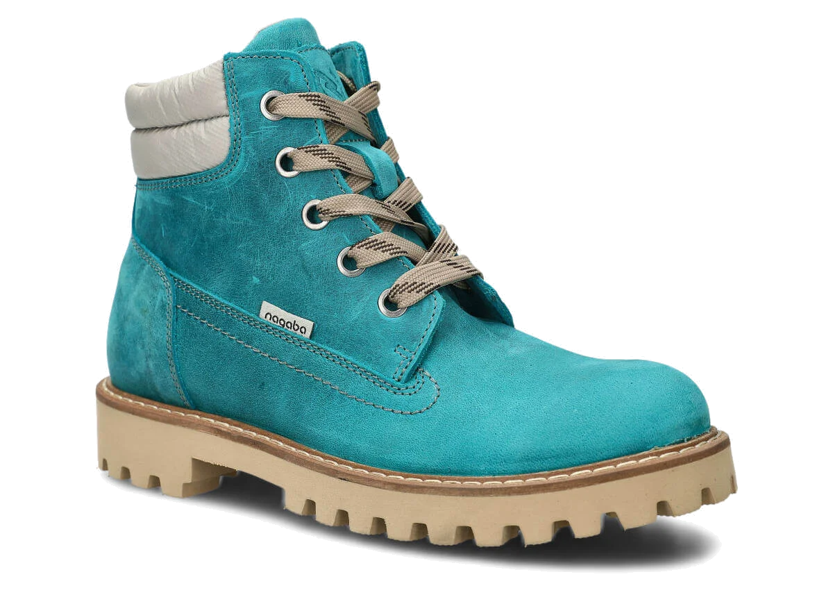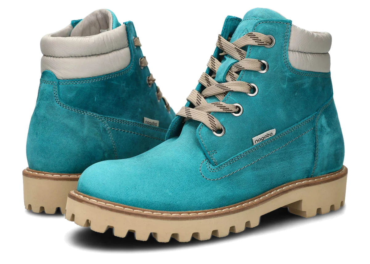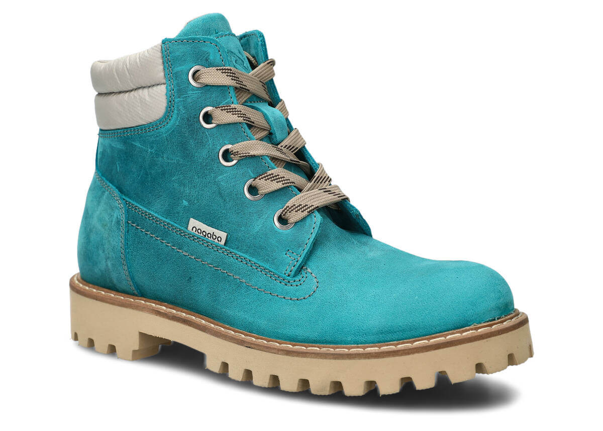 Kotníkové traperky NAGABA 622 tyrkysová crazy kožené