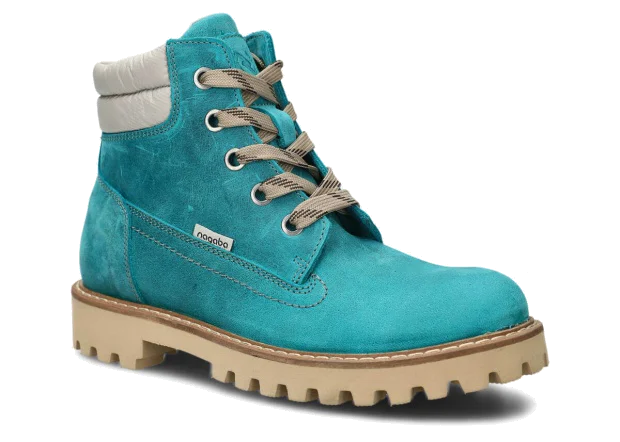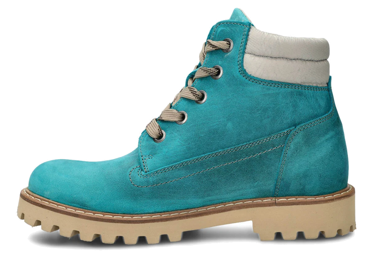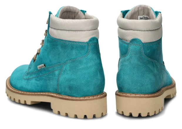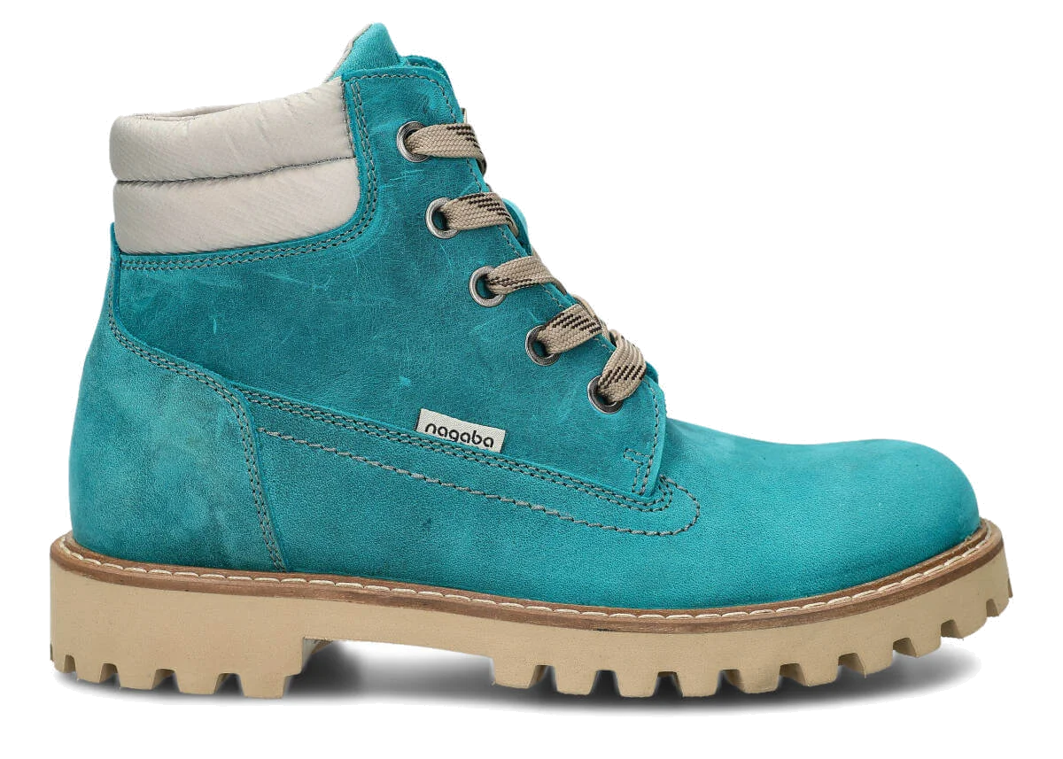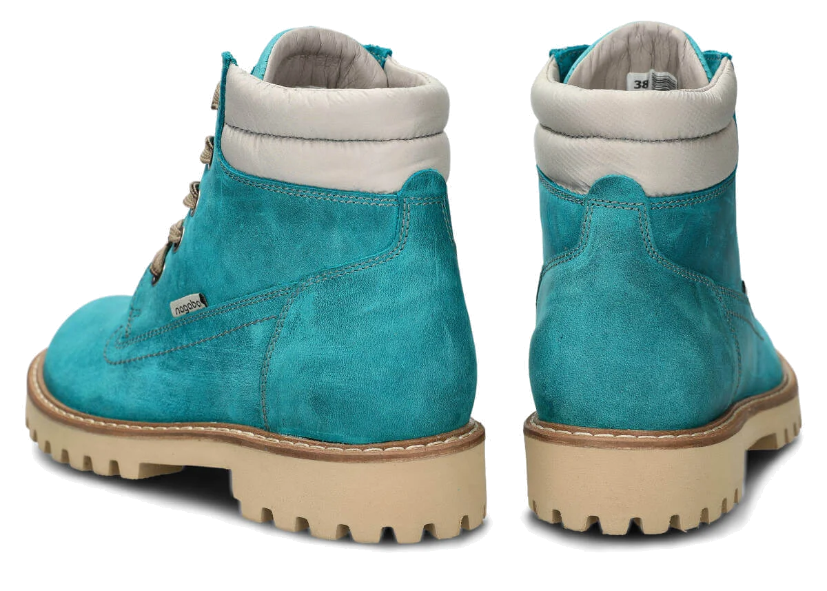 Kotníkové traperky NAGABA 622 tyrkysová crazy kožené